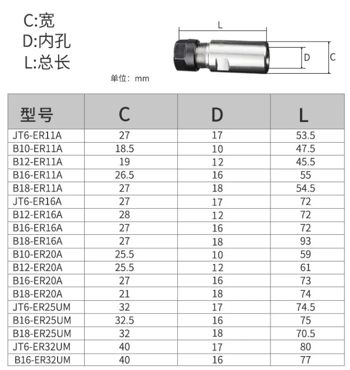Вал двигателя B10 B12 B16 B18 JT6 ER11 ER16 ER20 ER25 ER32 Цанга Зажимной патрон конусный сверлильный патрон токарный инструмент держатель для станка с ЧПУ