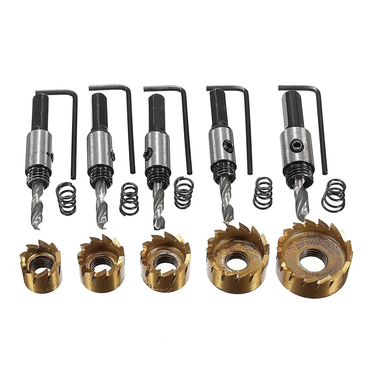 Набор сверл из быстрорежущей стали, 16-30 мм, 15 шт., с 5 гаечными ключами для древесины, металла