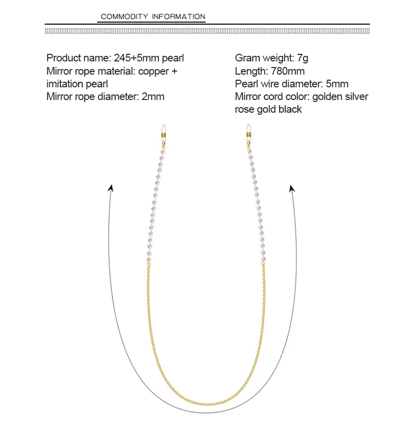Цепочка для очков женская с жемчужинами, модный металлический шнур ...