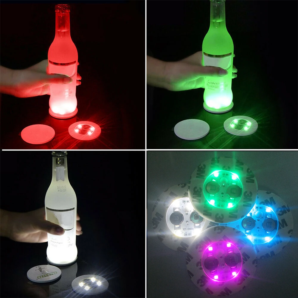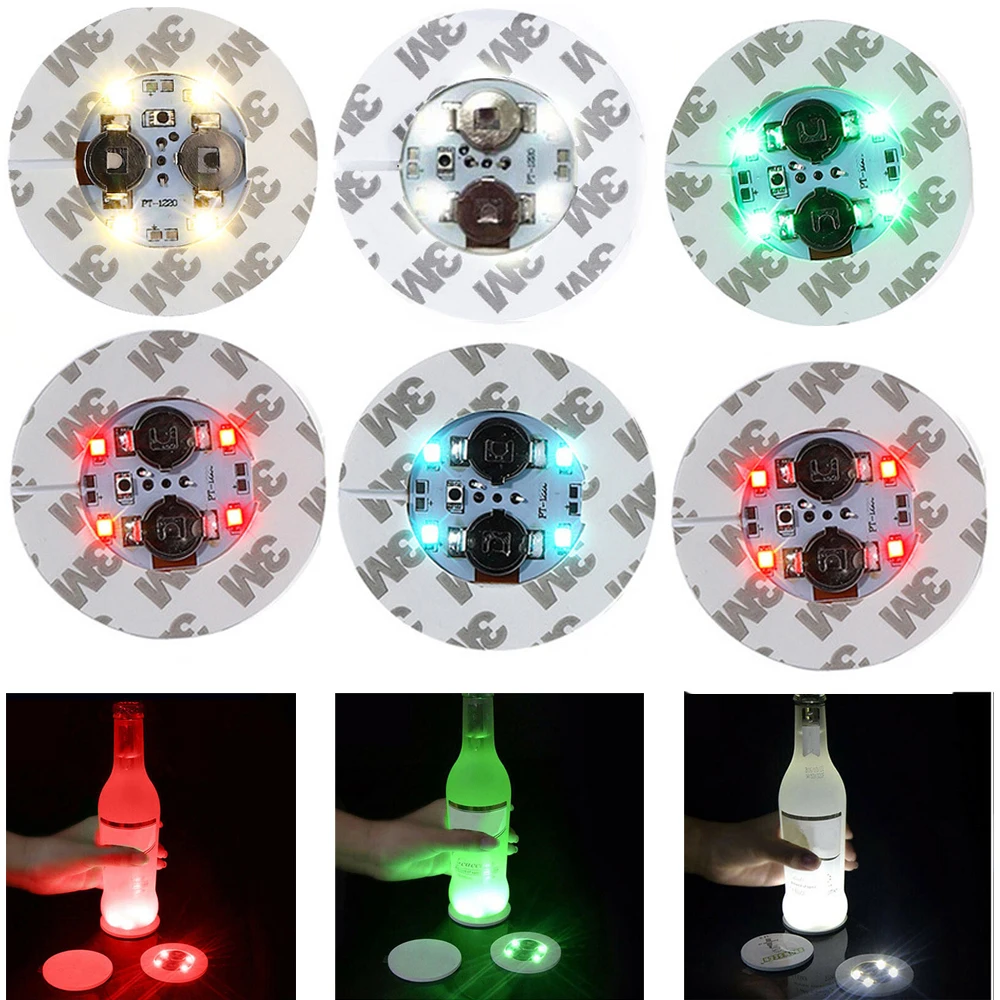 10 шт./лот, 4 светодиода, мини светодиодная лампа для бутылок, светящиеся наклейки для каботажных аппаратов, для KTV Bar, Рождественская вечеринка, ваза, Декор, светодиодная глорификатор, чашка для напитков, коврик