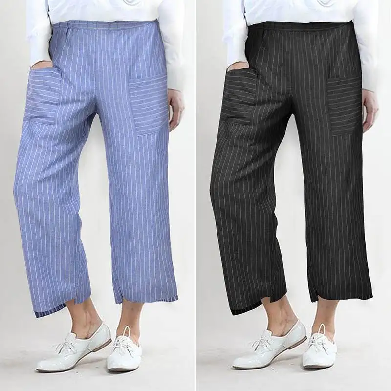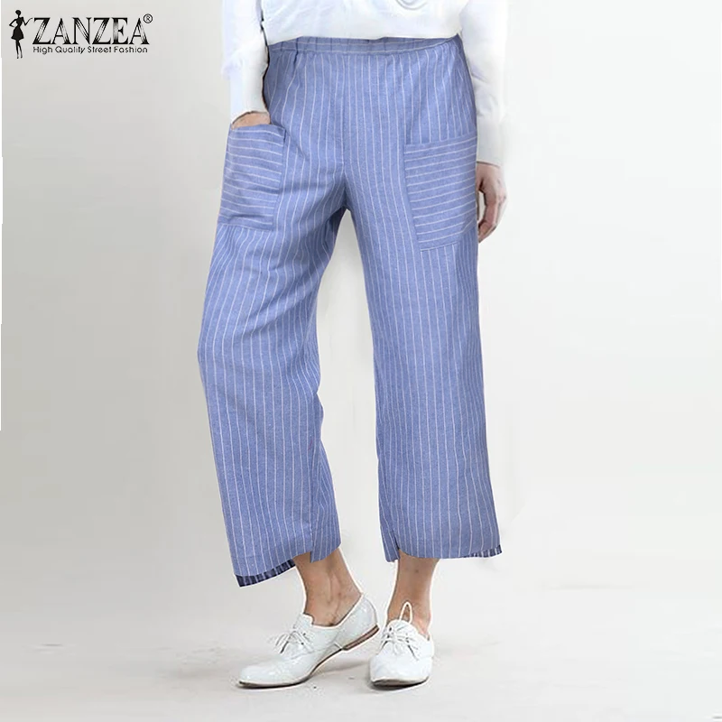 Женские повседневные штаны в полоску ZANZEA, свободные брюки свобод...