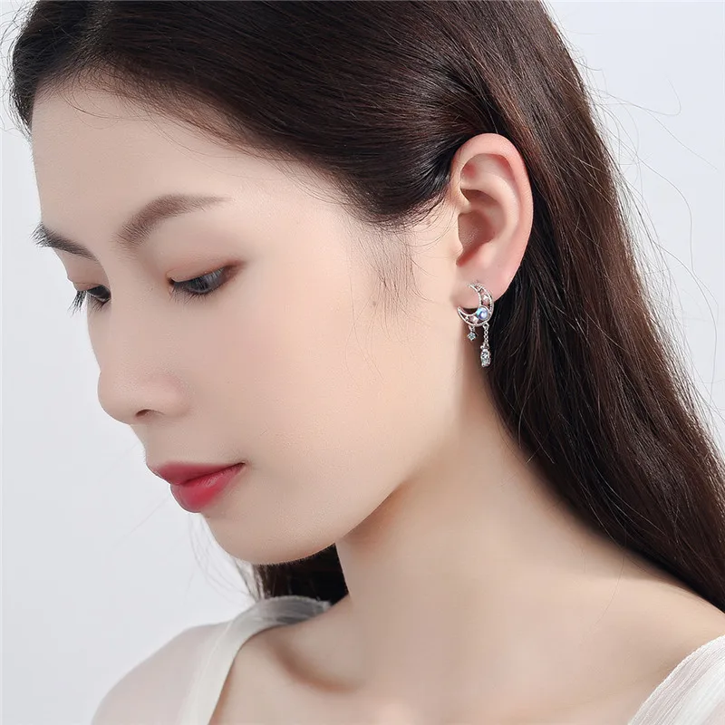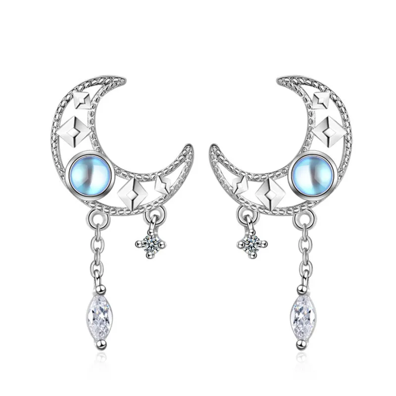 Серьги-подвески женские из серебра 925 пробы, с лунным камнем
