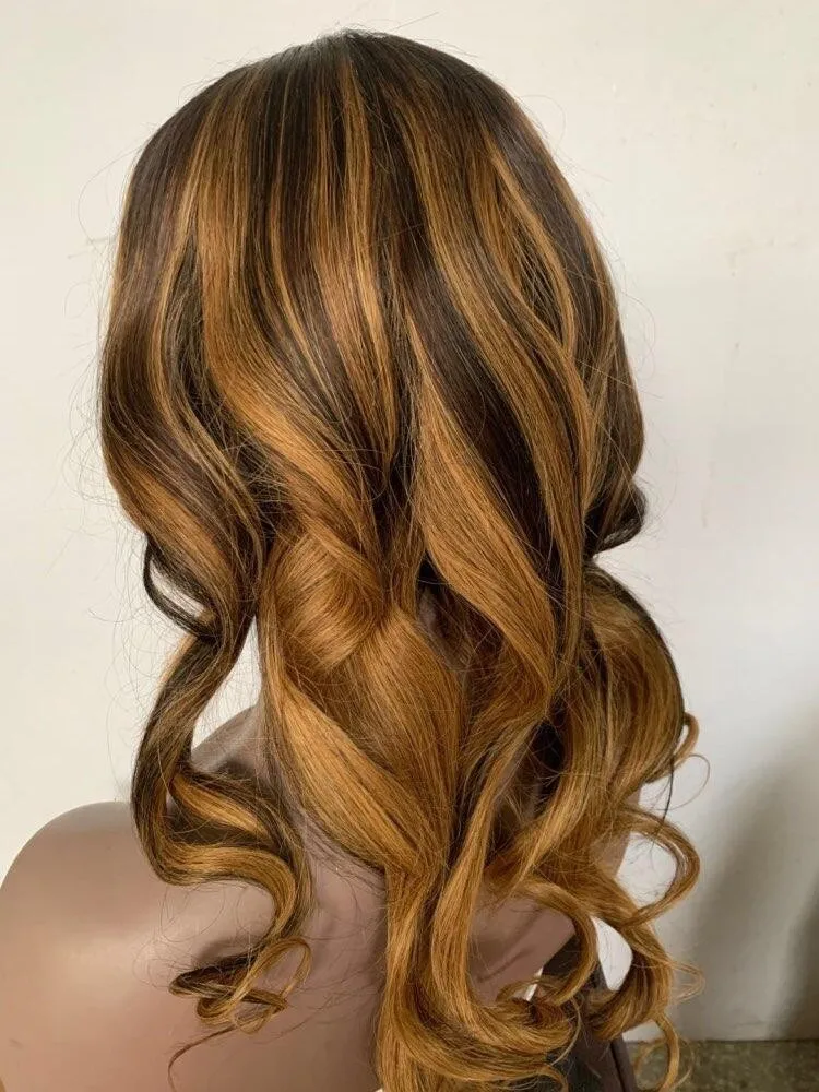 Страна: CA Color: honey blonde wig Density: 150% Stretched Length: 24inches Ships From: China Доставка: Fedex IP 17.02.2021