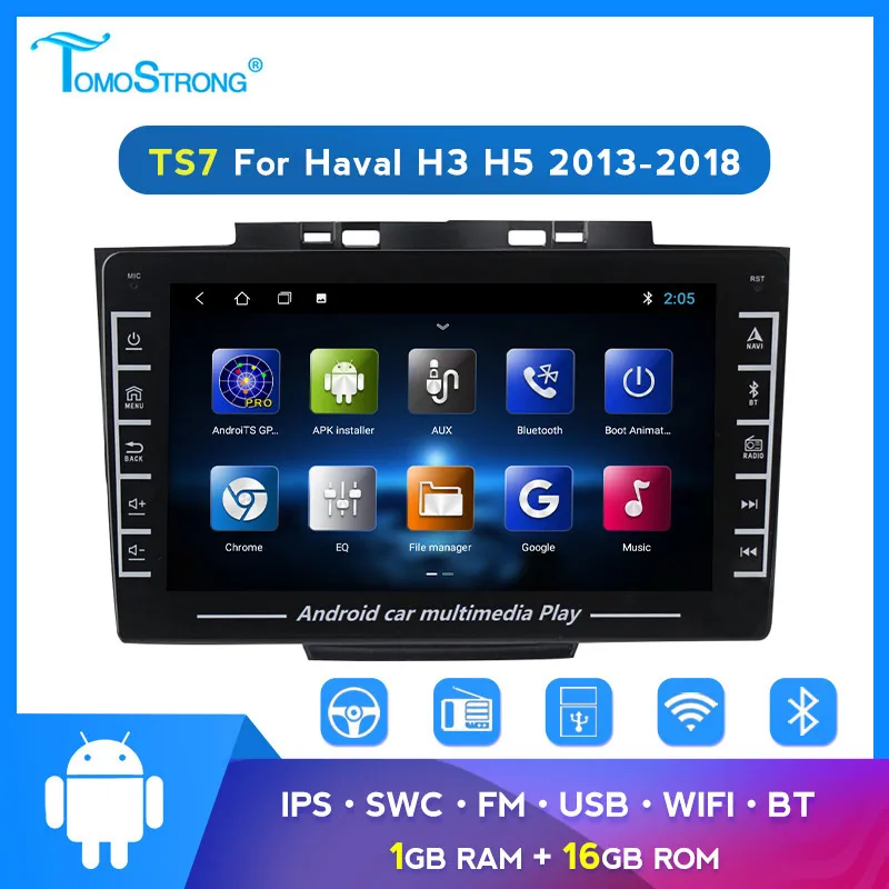 Автомагнитола для Greatwall Haval, мультимедийный видеоплеер на Android, с IPS-экраном, Wi-Fi, USB, BT, для Greatwall Haval H5, H3, 2013-2018, типоразмер 2 din