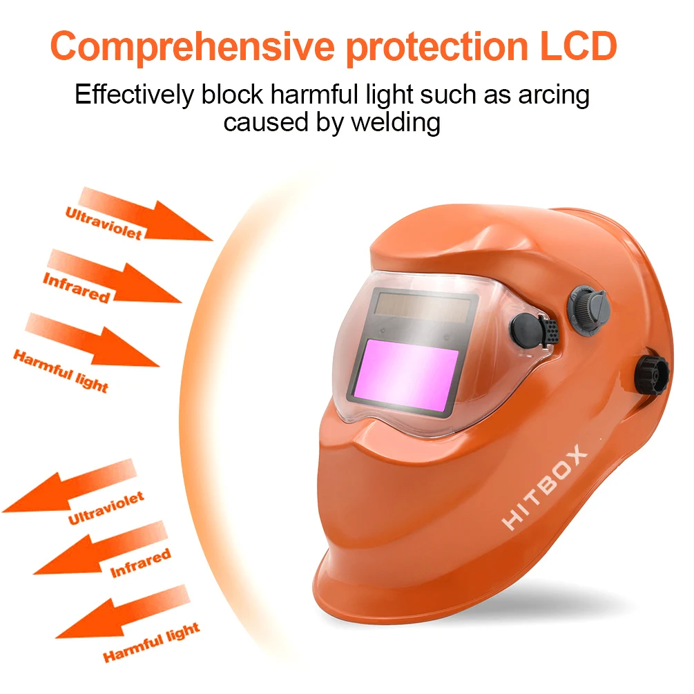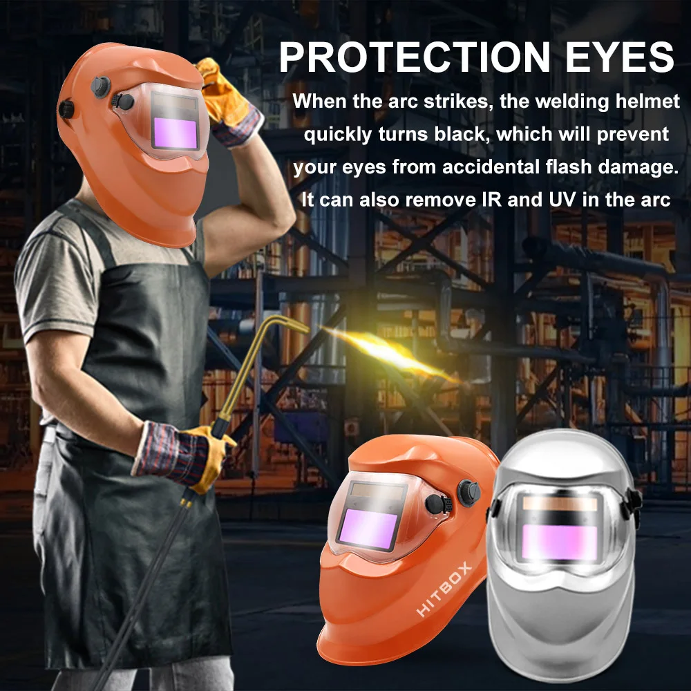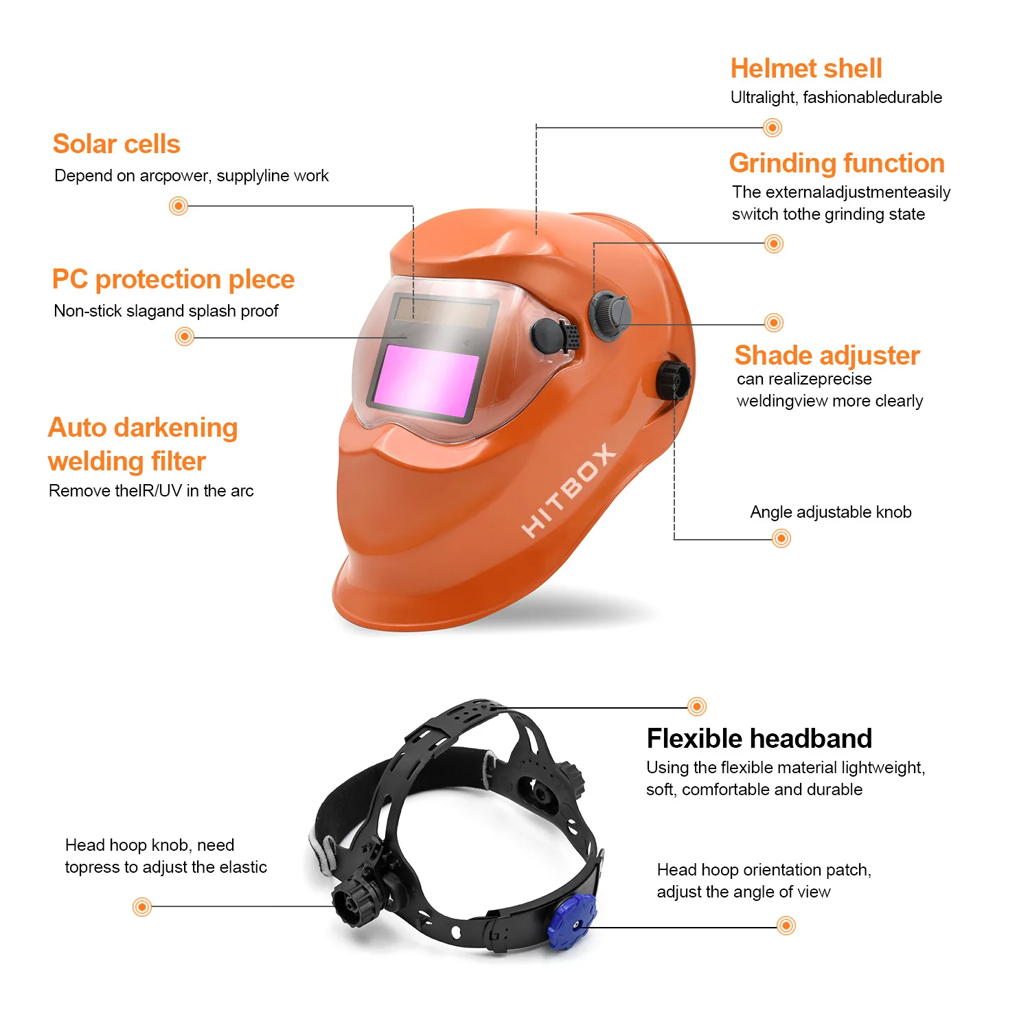 Сварочная маска HITBOX, шлем с автоматическим затемнением, на солнечной батарее, с регулируемым диапазоном затемнения, для плазменного сварочного аппарата TIG MIG ARC