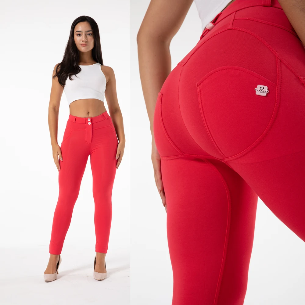Люблю их. Ткань из плотного спандекса и хлопка. Красный-78% хлопок, 17% спандекс и темно-синий-80/20. Темно-синяя пара кажется, что она немного больше, хотя и имеет одинаковый размер. Подходит для высокого человека.