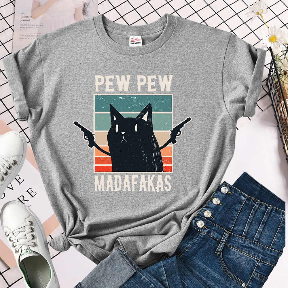 Comic Black Cat Kawaii Pew Женская Футболка Harajuku Винтажная футболка корейский стиль футболки 2021 летние женские Топы с коротким рукавом