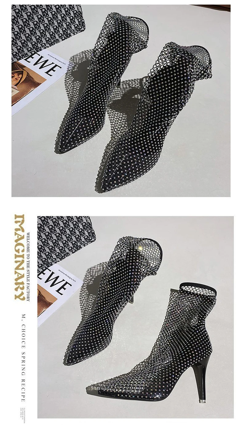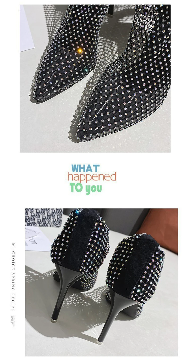 Пикантные туфли-лодочки на высоком каблуке; Блестящие сетчатые носки в сеточку; Женские туфли на шпильке с острым носком; Ctystal
