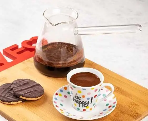 Турецкий кофе в стеклянном кофейнике выглядит еще красивее и красивее.