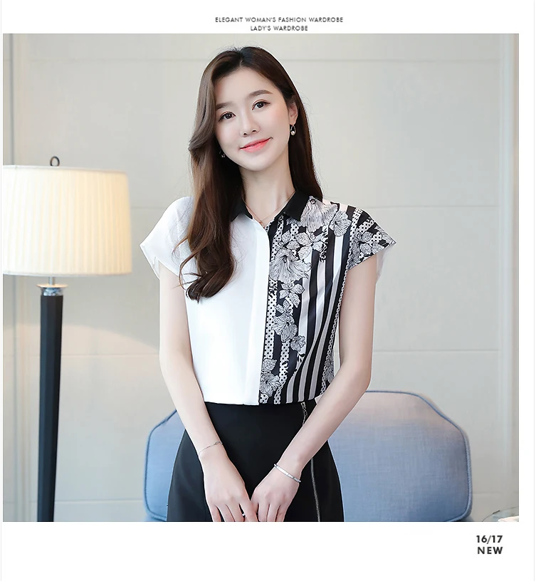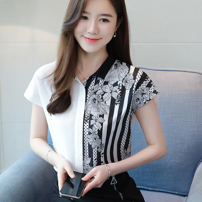 Женская шифоновая блузка с коротким рукавом, блузка контрастных цветов с цветочным принтом в Корейском стиле, кардиган на лето, 2021