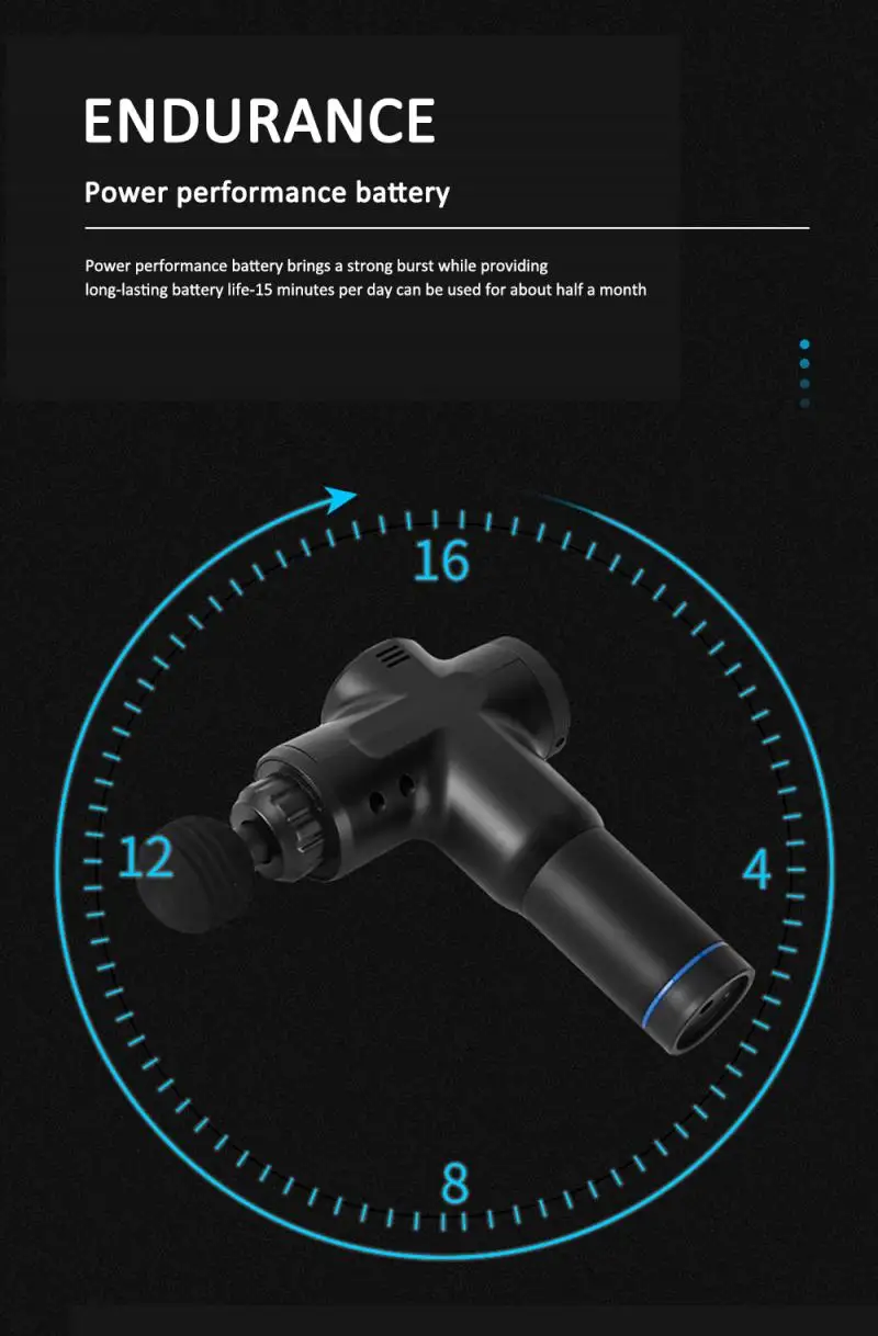 -Быстрая зарядка: массажер оснащен высококачественным литиевым аккумулятором емкостью 2000 мАч, который может работать от 5 до 6 часов после каждой зарядки и может быстро заряжаться.