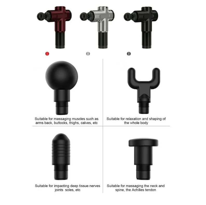 -Четыре разные массажные головки: массажер оснащен четырьмя массажными головками разной формы, чтобы помочь пользователям расслабить разные части тела.