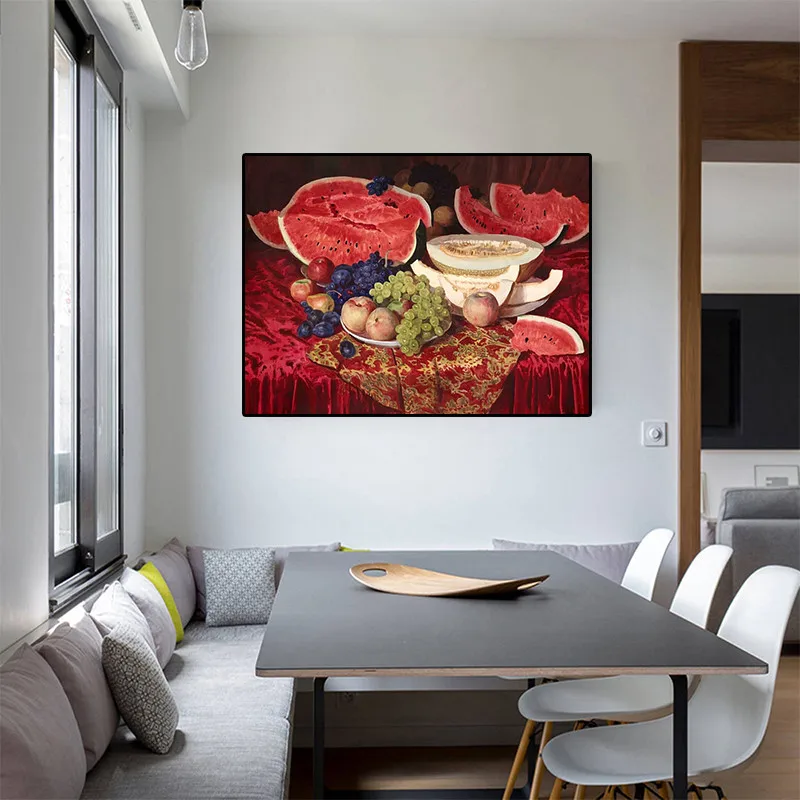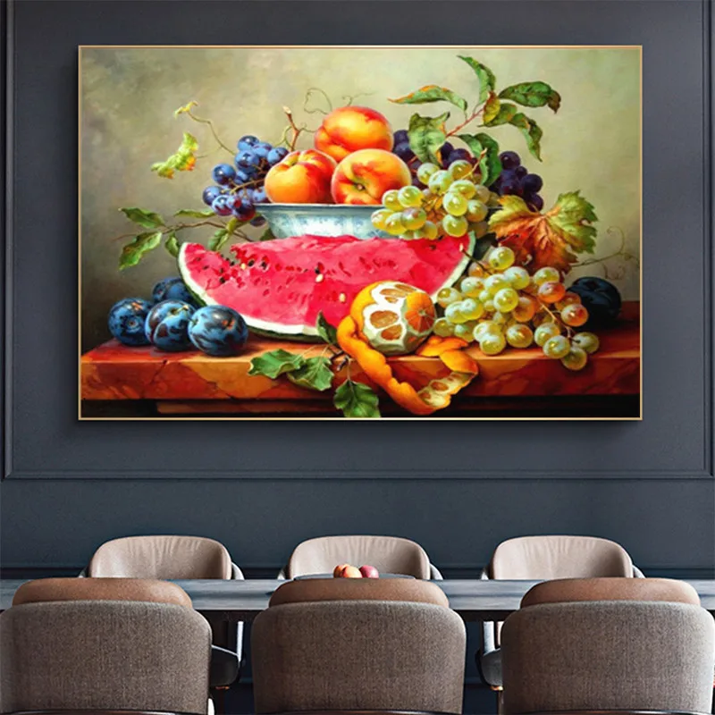 Современная Картина на холсте с фруктами, виноградом, яблоком, постеры и принты для кухни в скандинавском стиле, настенные художественные картины для гостиной, украшение для дома