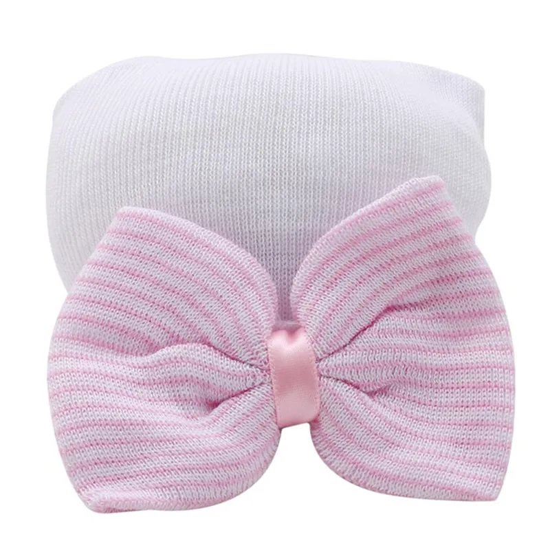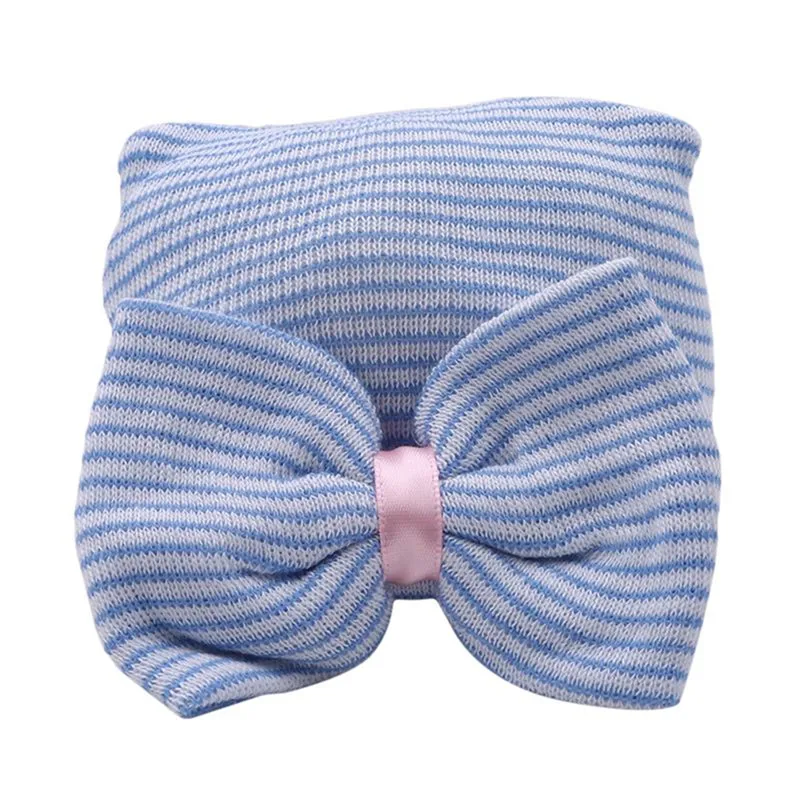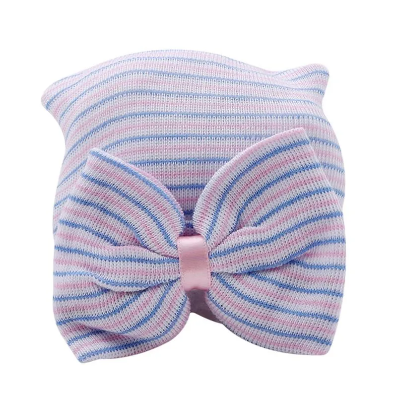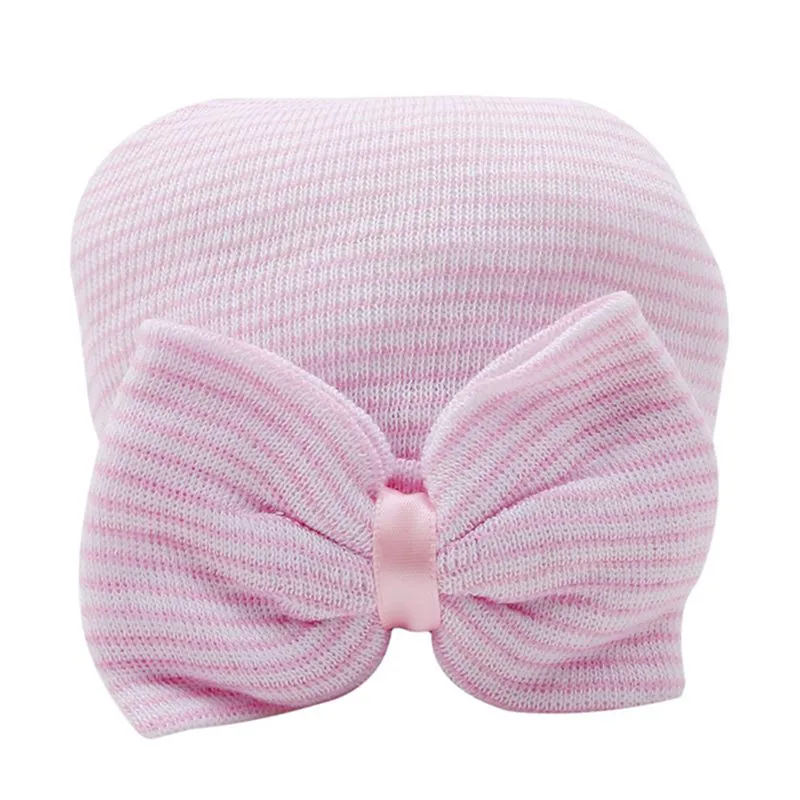 2021 милая детская шапка в полоску с большим бантом, вязаная шапка для маленьких девочек 0-3 месяцев, теплая шапка с капюшоном для новорожденных