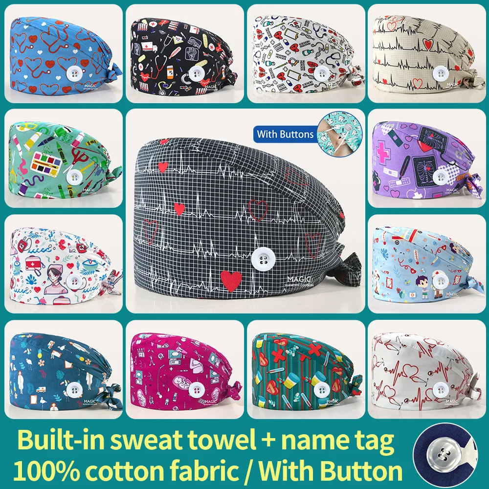 Медицинские шапочки мультфильм зуб принт на пуговицах с эффектом по...