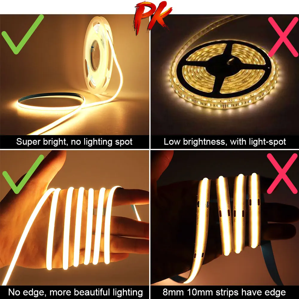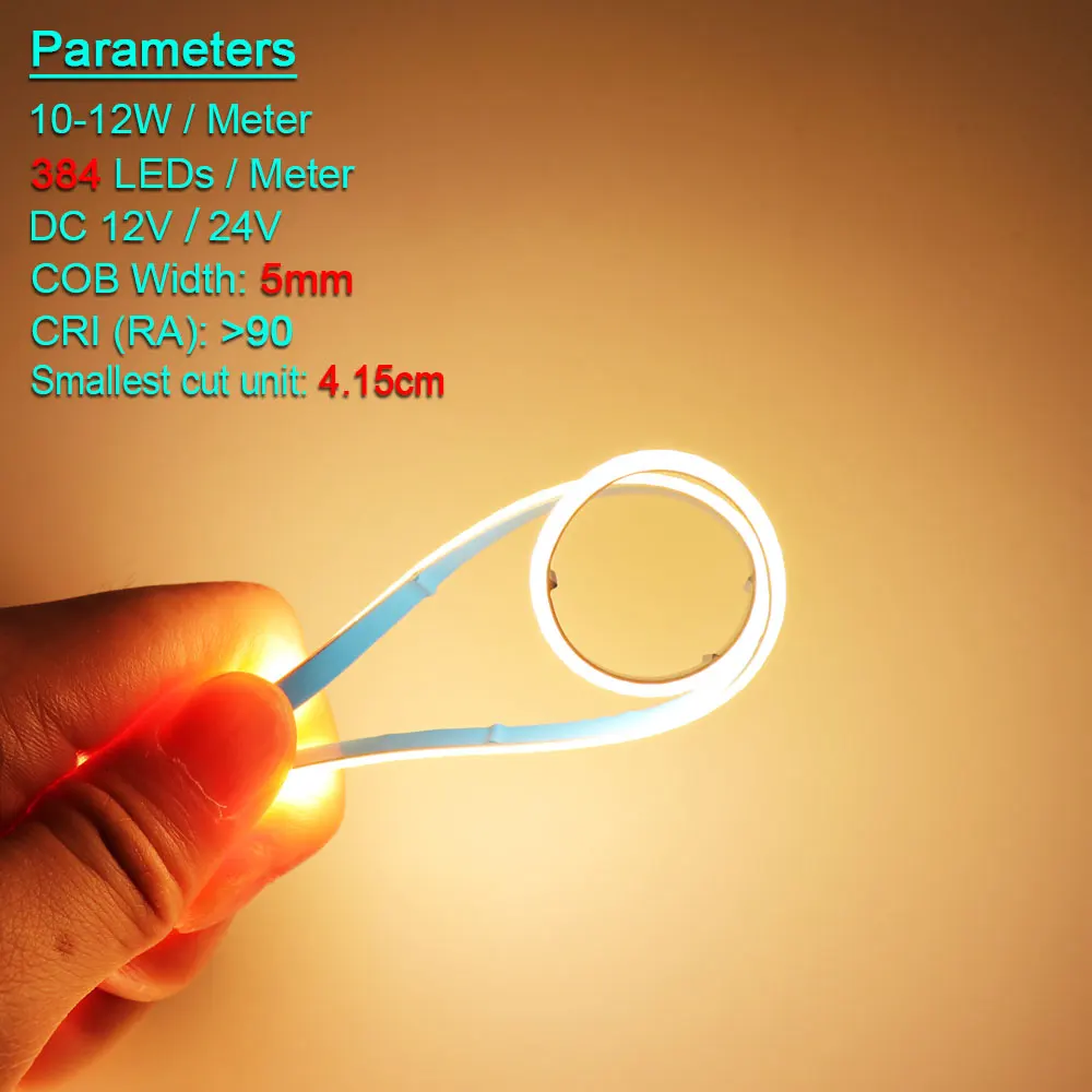 Супертонкая узкая Светодиодная лента COB, 12 В, 24 В, RA90, ширина 5 мм