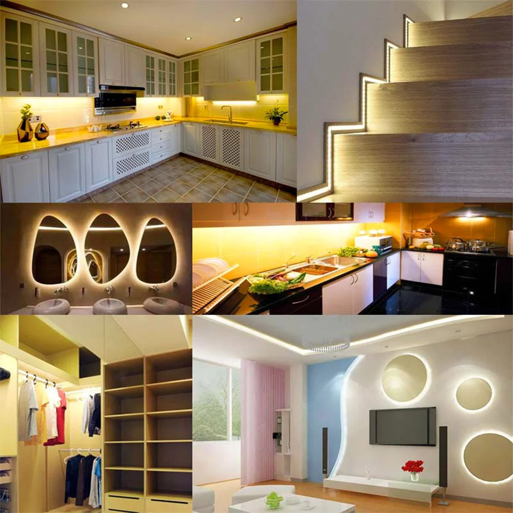 Брал один метр на замену диодной линейки в плоском светильнике, который встраивается в реечный потолок ванной комнаты. После затопления часть диодов в старой линейке погибла от коррозии, поэтому пришлось искать замену. Основная сложность была в крайне низком профиле лампы, в идеале надо было найти вообще 4мм полоску, но таких не было. Эта лента оказалась ближе всего, реальные 5мм высоты, без каких-то краёв, которые никто не учитывает, но которые имеют значение в моём случае. Пока в лампу не установил, только проверил подключением к трансформатору, светит хорошо. Вообще, лента выглядит на удивление неплохо, можно клеить её вообще без короба, будет практически незаметно и симпатично в выключенном состоянии.