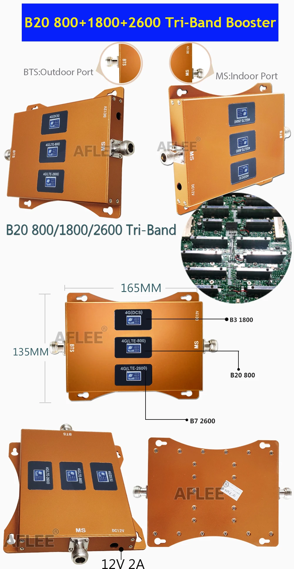 Лидер продаж! Трехдиапазонный усилитель сотовой связи B20, 800, 1800, 2600 МГц, 4G, GSM репитер для сотовых телефонов, 2g, 4g сеть, Мобильный усилитель сигнала LTE DCS LTE