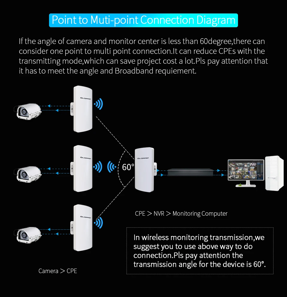 Comfast 2 шт. 300 Мбитс высокомощный уличный Wi-Fi мост 3 км 5 ГГц ...