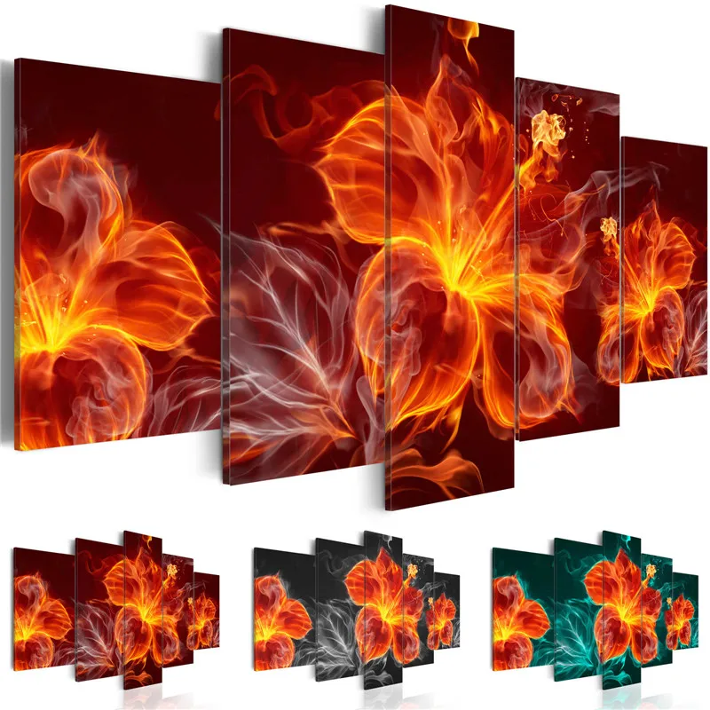 Абстрактный постер с имитацией цветов, набор из 5 панелей, настенный художественный постер с красной флорой, Современная Картина на холсте для гостиной, домашний декор, картина