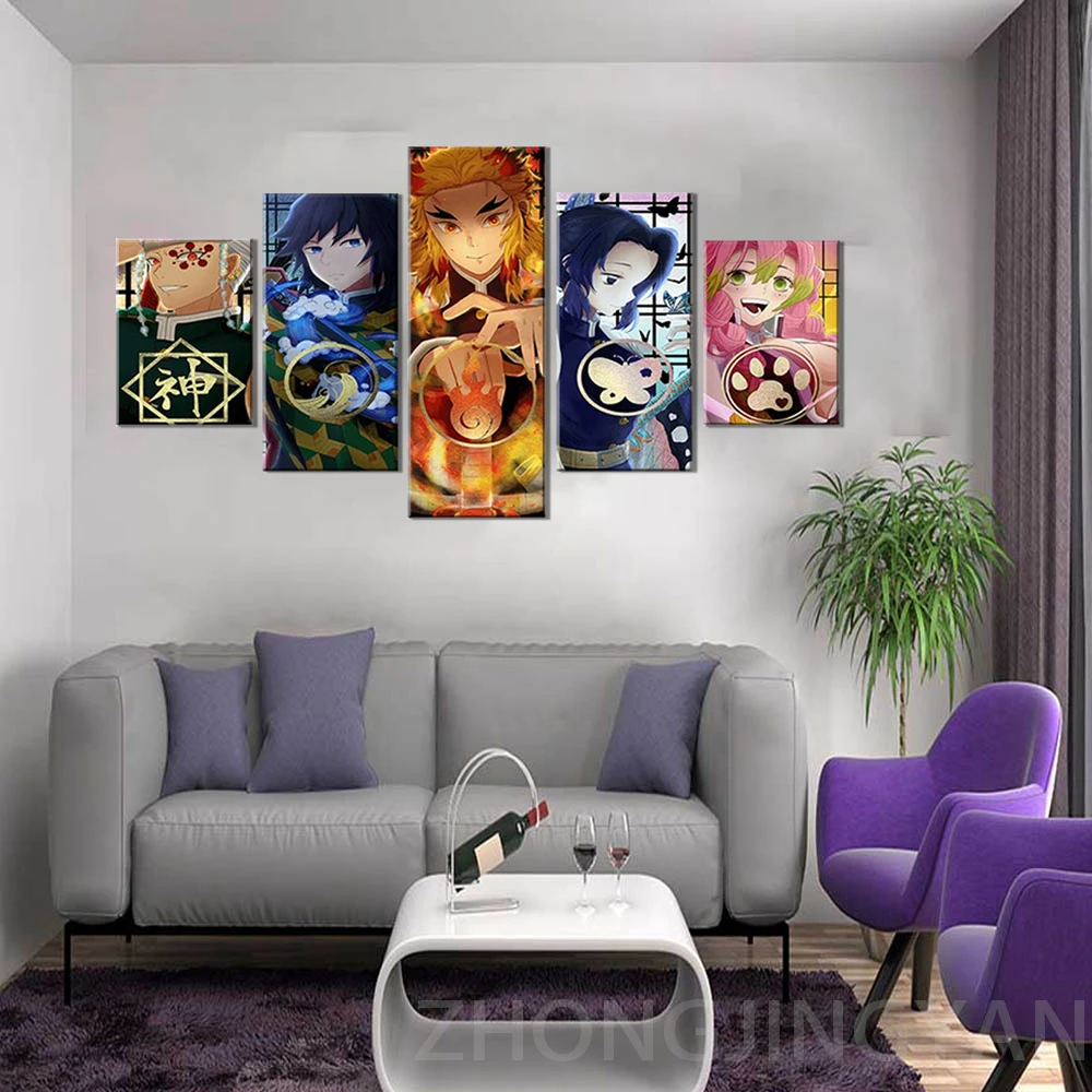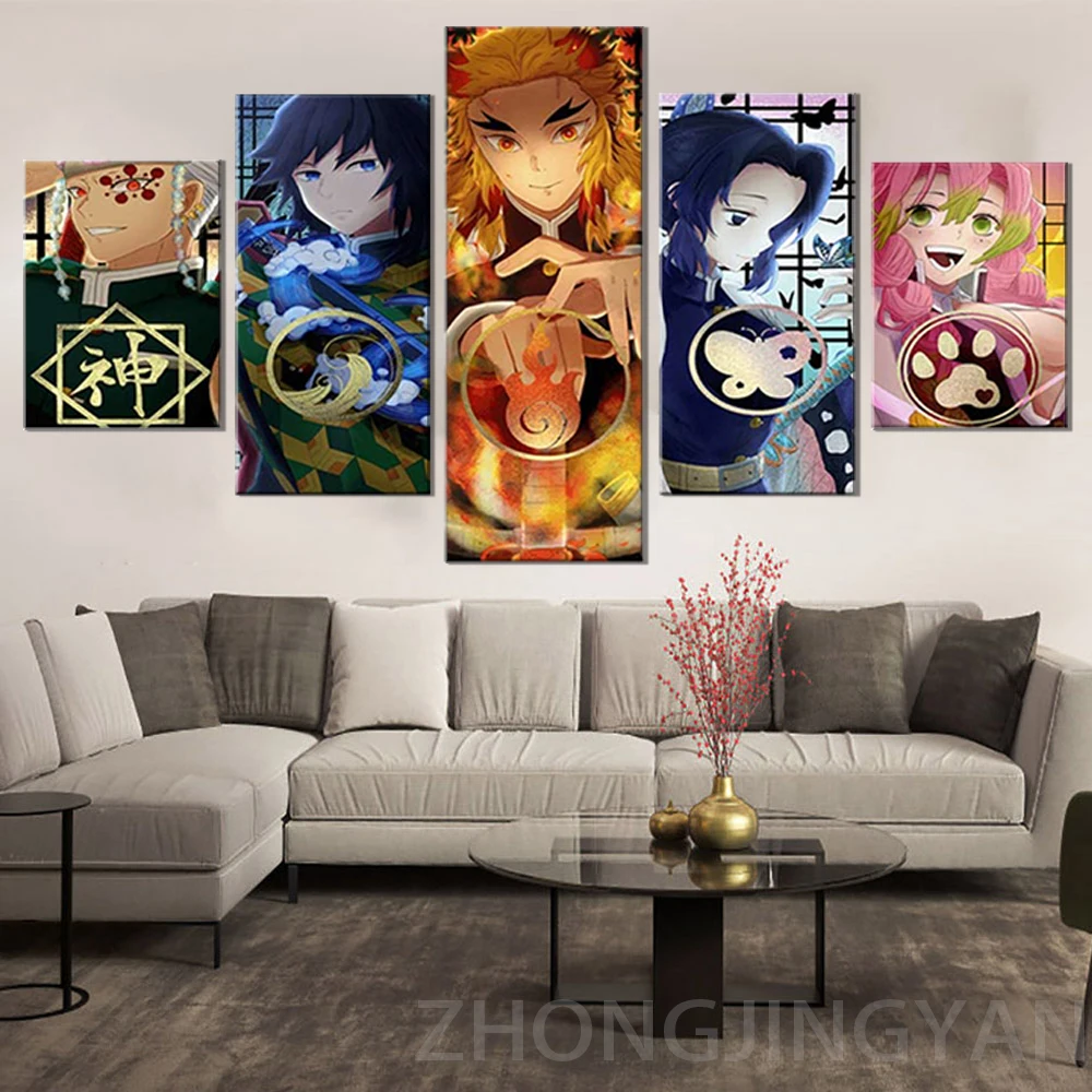 5 шт., мультяшный плакат, гашира, колонны, убийца демонов, киметсу, No Yaiba, аниме, настенное искусство, картина для домашнего декора, рамка