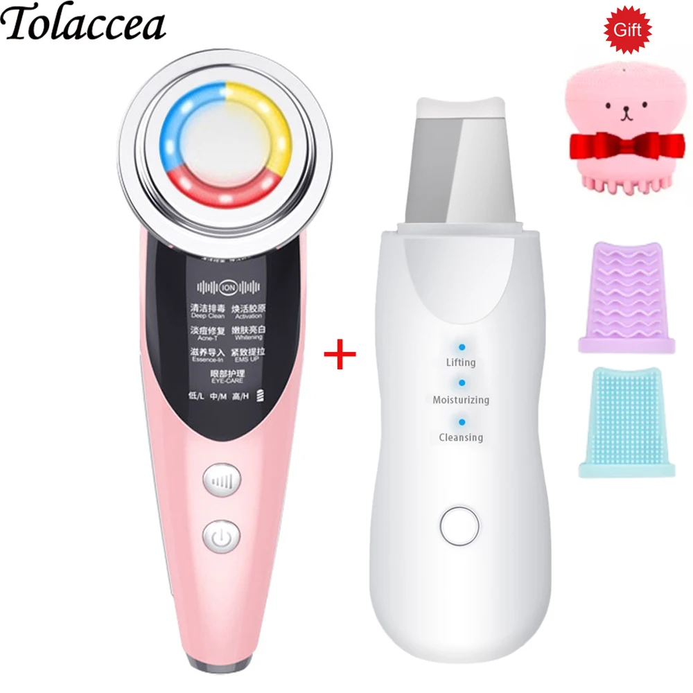 2021 RF светодиодный фотон омоложения кожи радио мезотерапия лифтинг лица + аппарат для очистки кожи лица глубокий уход за кожей лица лопатка для чистки для удаления угрей
