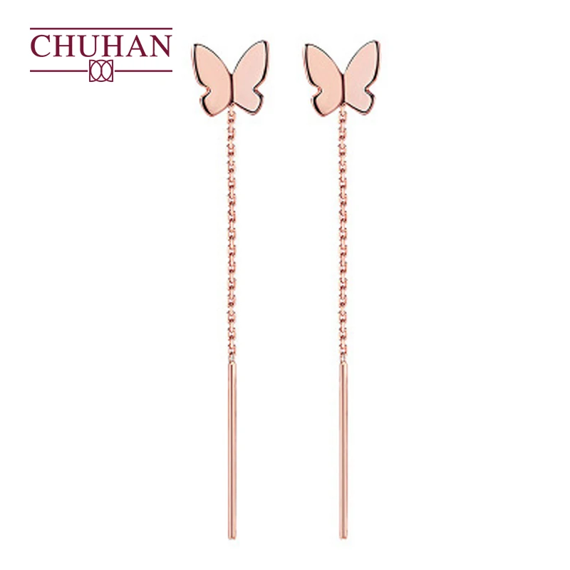 Женские серьги с бабочкой CHUHAN, золотистые простые золотистые серьги с кисточками, 18 К, AU750