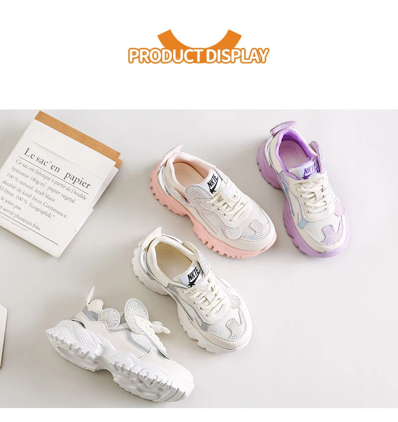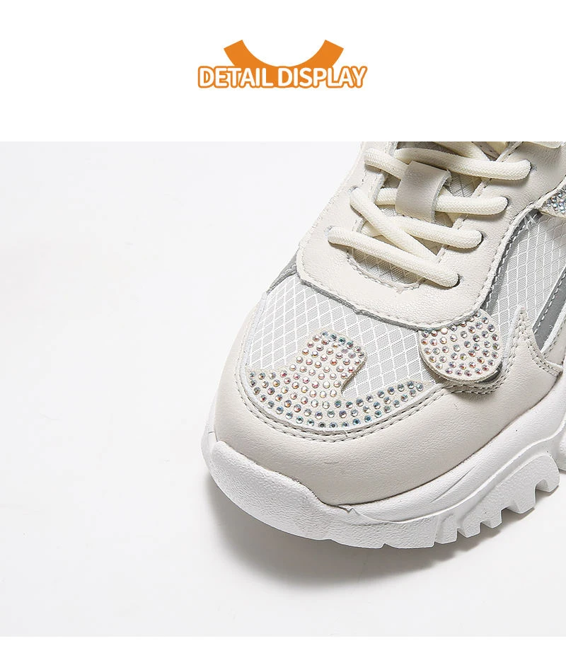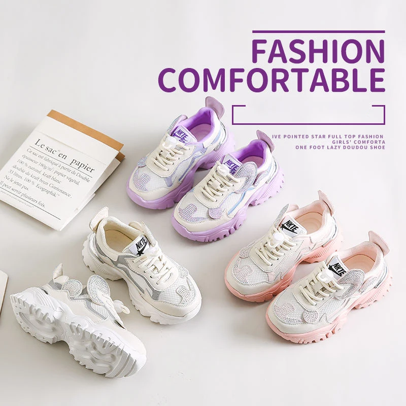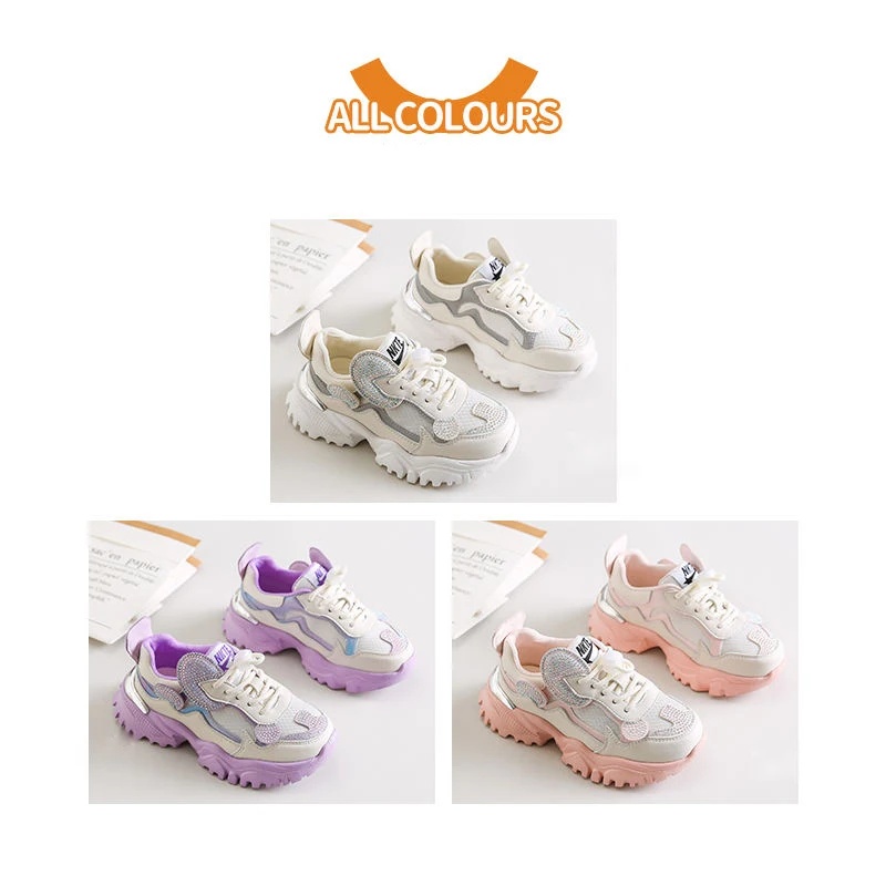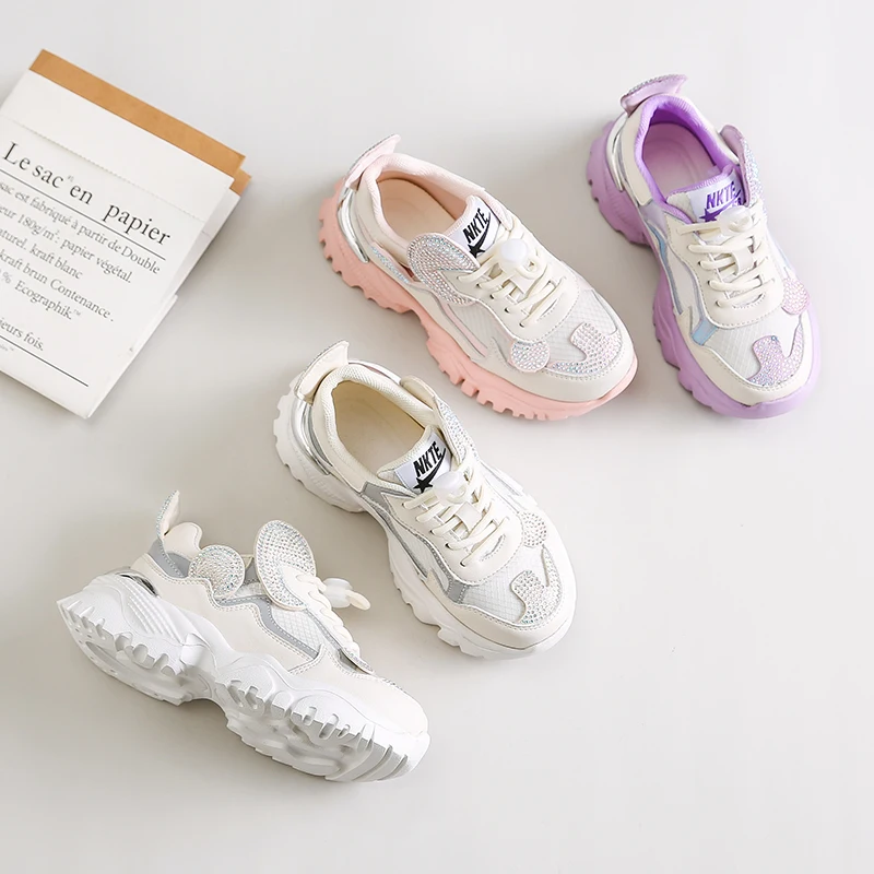 2021 Весенняя Спортивная одежда для детей, спортивная одежда для маленьких мальчиков; Брендовая обувь; Детские белые кроссовки в повседневном стиле для девочек Стразы массивные кроссовки