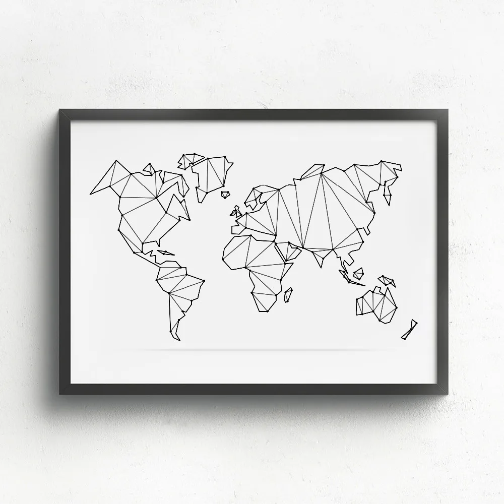 Абстрактная карта мира, холст, Художественная печать, настенные картины, Геометрическая низкая поли карта мира, плакат, украшение для дома, холст, живопись
