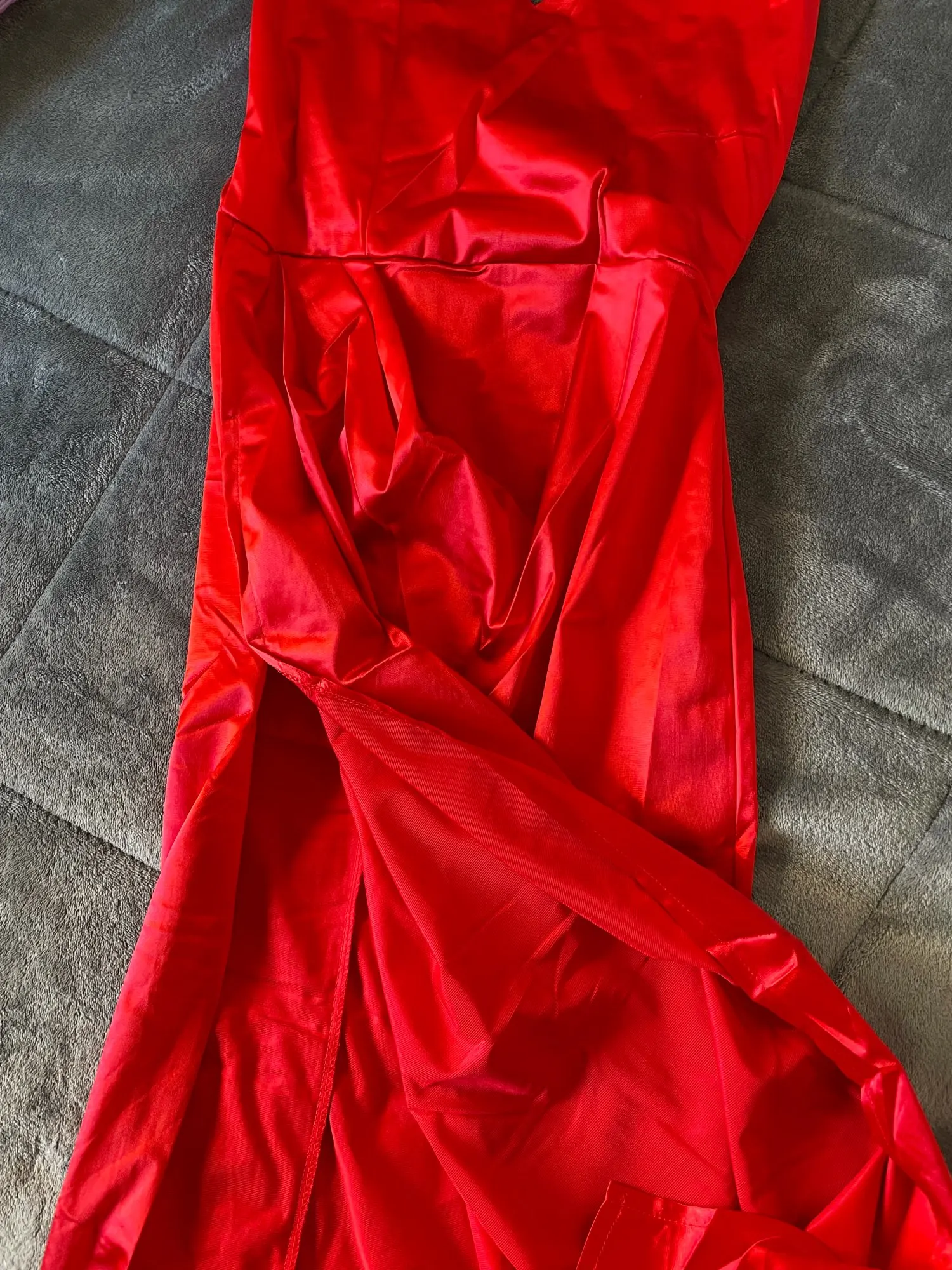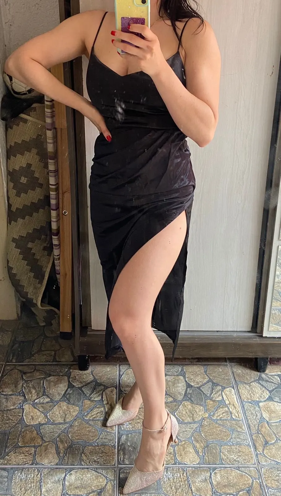 Мягкая и тянущаяся ткань, мой разрез-правая нога, хорошо прилегает к телу.