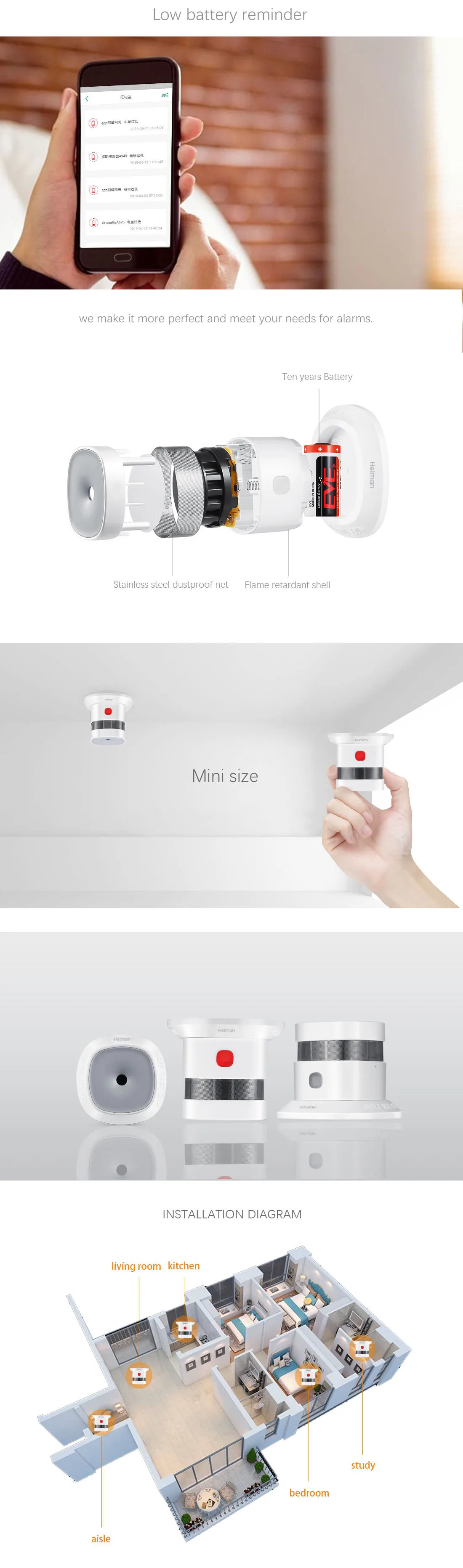 Этот продукт является Умный фотоэлектрический датчик дыма, С ультра-низким энергопотреблением Zigbee технология беспроводной сети, он способен в режиме реального времени обнаруживать наличие дыма, как только детектор опасности пожарного дыма, красный светодиодный аварийный сигнал быстро и dededetectors сразу обнаруживает пожарную опасность дыма, может оповещать Вас и Вашу семью своевременно, он может быть широко использован в домашнем хозяйстве, гостиной, Кофейня, танцевальный зал в любых других местах, требует пожарной сигнализации, мониторинга бесплатного инструмента. Один раз Наклейте один раз.
