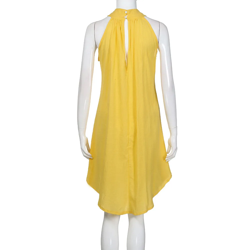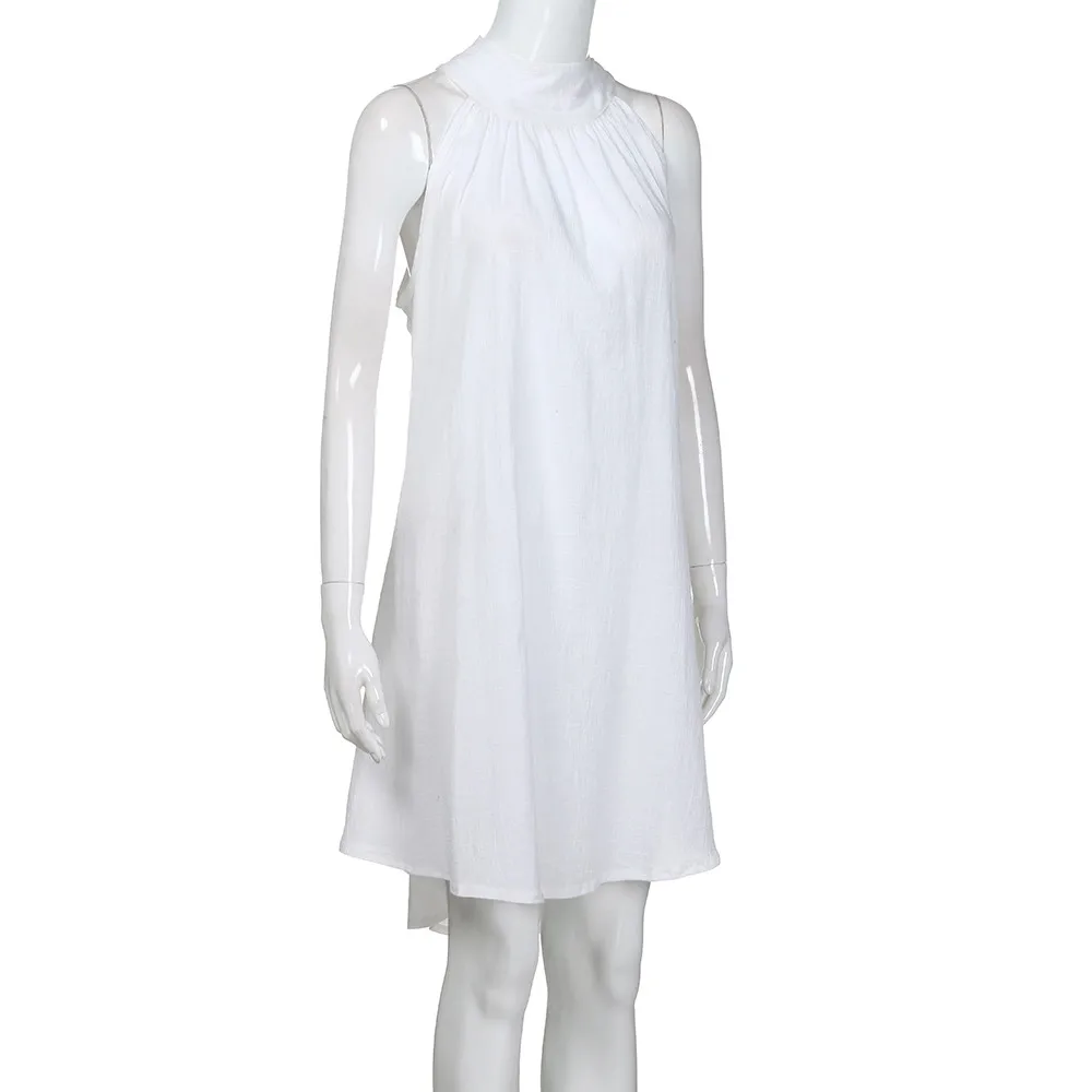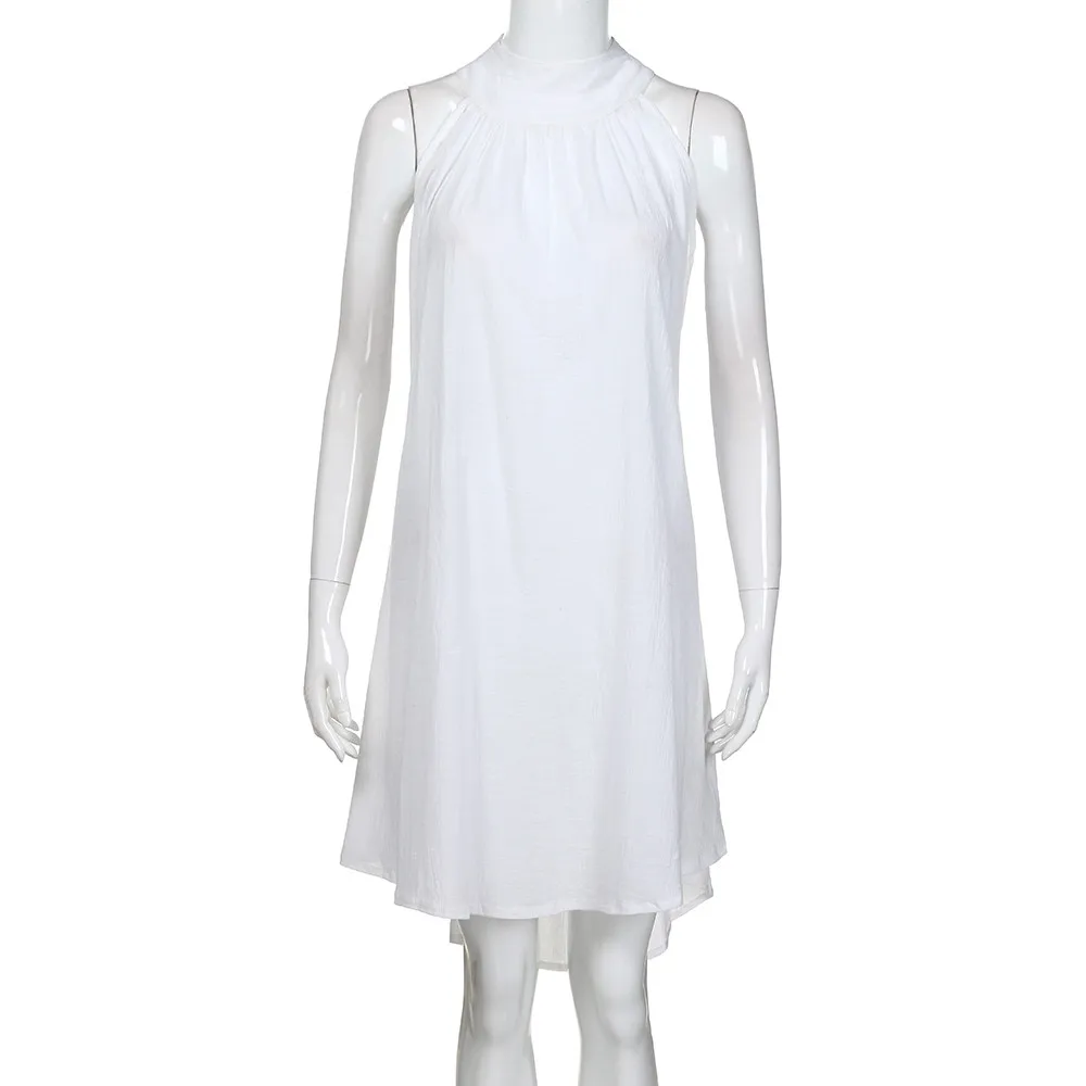 Платье-водолазка женское ассиметричное, праздничное пляжное вечернее, без рукавов, длиной выше колена, однотонное, на лето