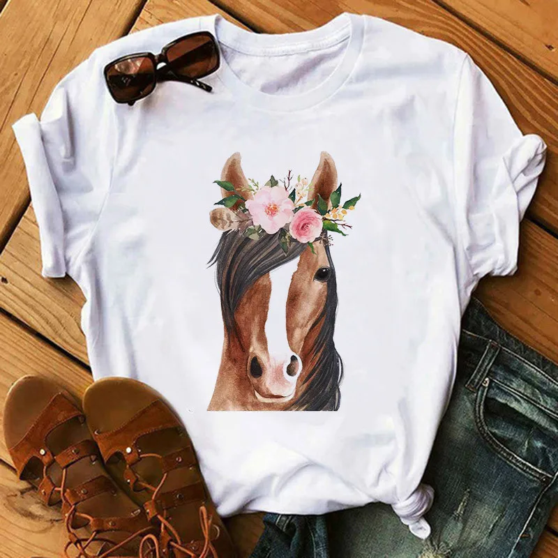 Летняя женская футболка kawaii с принтом цветов и животных, повседневная женская модная футболка с коротким рукавом в стиле Харадзюку