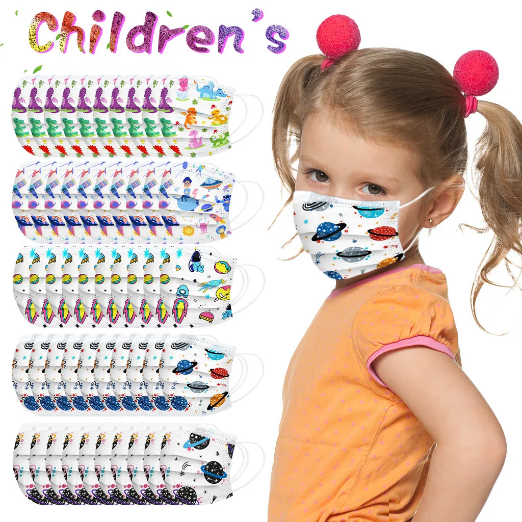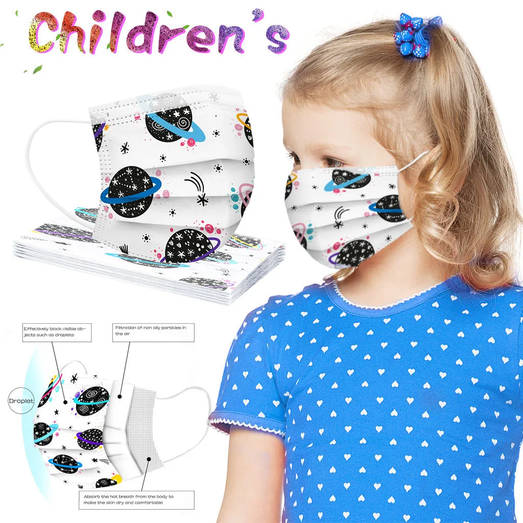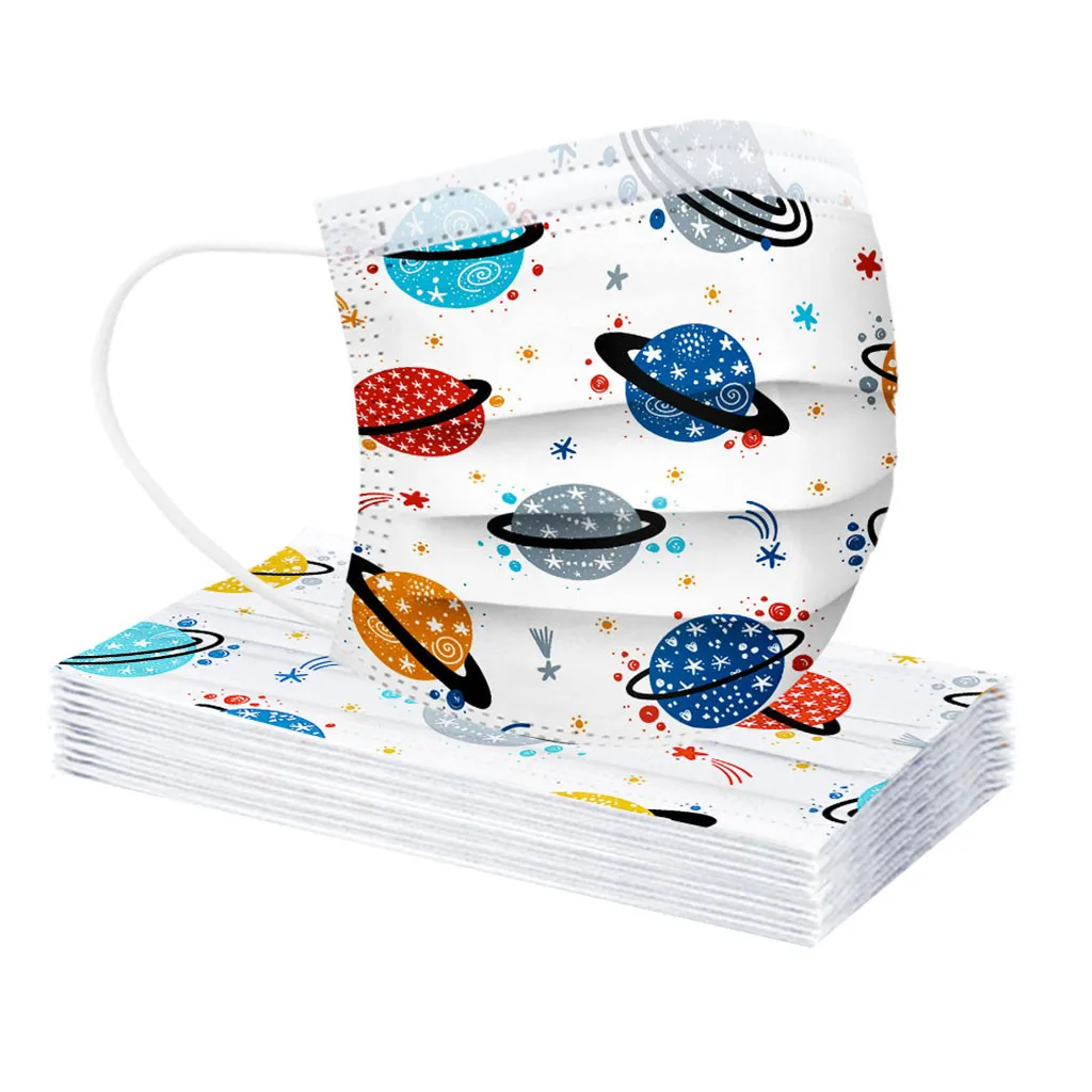 50 шт смешанные детские одноразовые маски для лица Цвет планета черный планета динозавр Космос летающая тарелка 3 Слои безопасные защитные маски