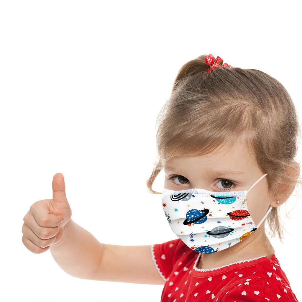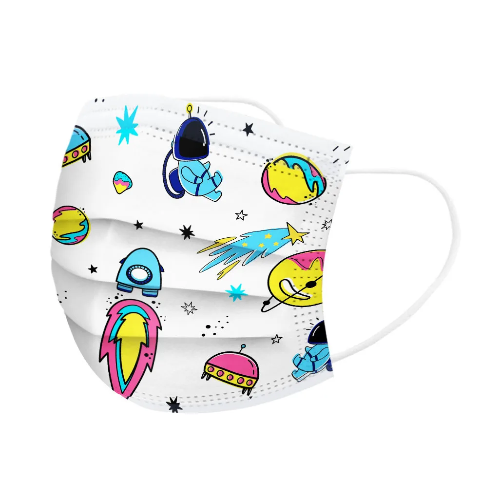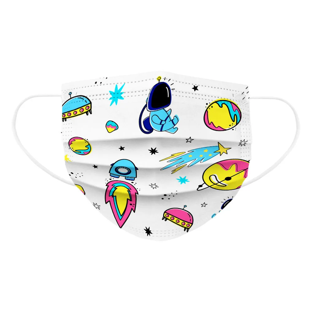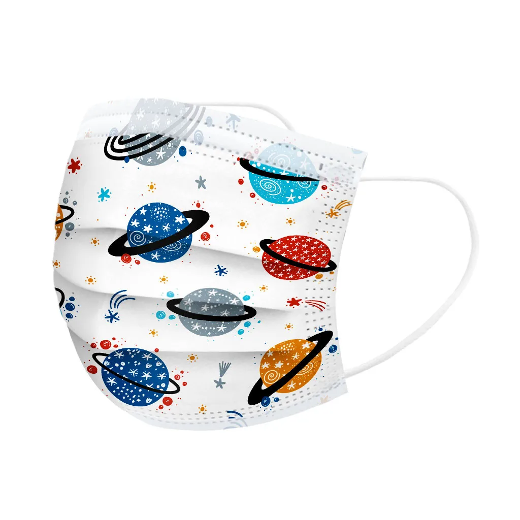 50 шт смешанные детские одноразовые маски для лица Цвет планета черный планета динозавр Космос летающая тарелка 3 Слои безопасные защитные маски