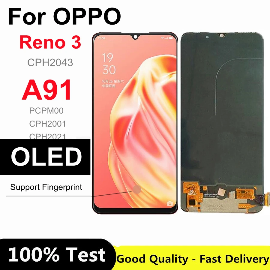 ЖК-дисплей 6,4 дюйма OLED для OPPO A91 CPH-2021 PCPM0, кодирующий преобразователь сенсорного экрана в сборе дюйма, для oppo reno 3 CPH2043, ЖК-дисплей