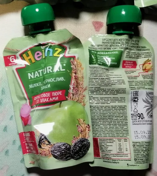 Фруктовые пюре Heinz со злаками созданы для расширения детского рациона. Пюре отлично подходят в качестве полезного и питательного перекуса или полдника для малышей старше 6 месяцев. Продукт в герметичной упаковке с крышечкой удобно брать с собой, а ребенок сможет есть его самостоятельно.