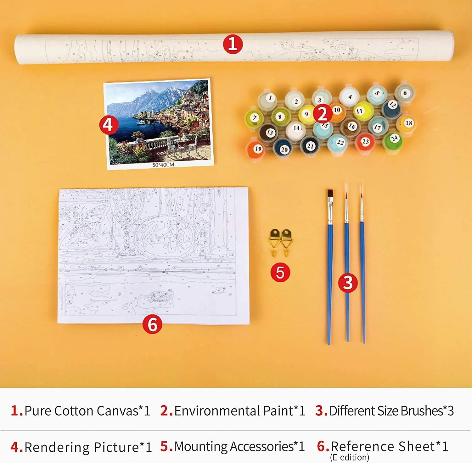 Вы можете получить-набор для рисования по номерам включает 1 предварительно напечатанный текстурированный холст (в деревянной рамке), 1 набор акриловых красок, 1 набор кистей (включая 3 шт.), поставляется с изысканной подарочной упаковкой ifymei