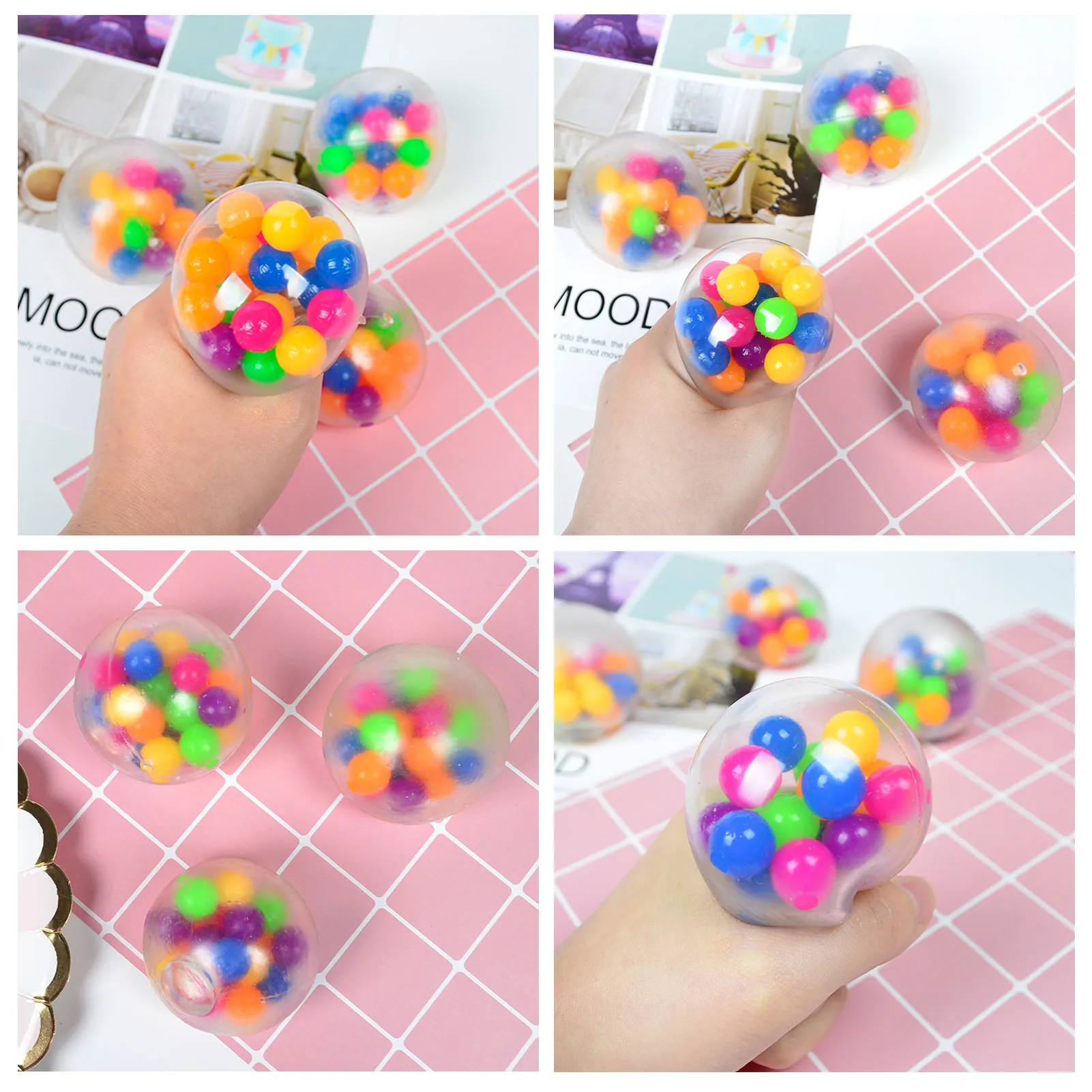 Забавный мягкий мячик мяч для снятия стресса, цветные бусины, Непос...