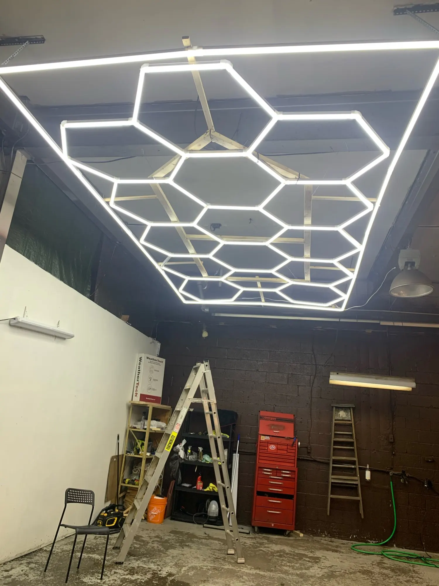 Сотовый дизайн, шестигранный светодиодный светильник, автоматическая детейка, световая балка для моечной станции, гаража, потолка