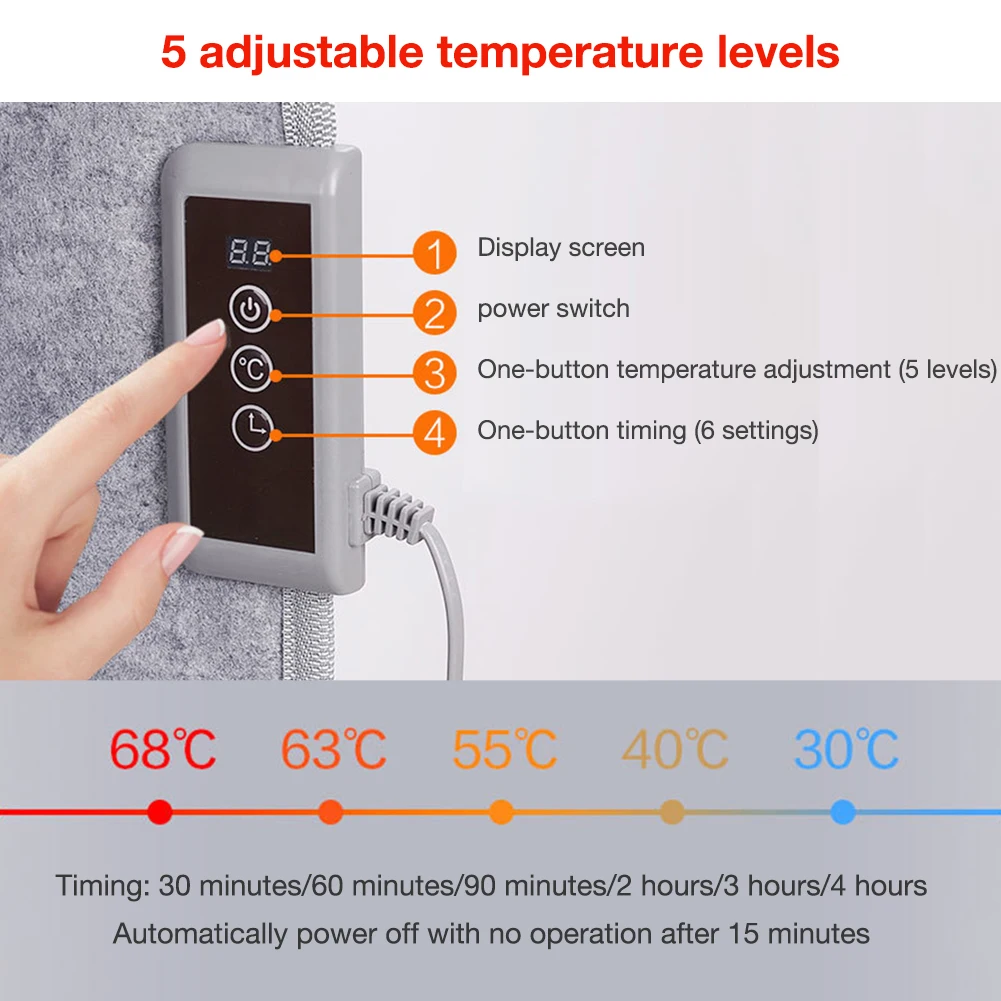 Спецификация:Модель: AYK-068Напряжение: американский стандарт: 110 В, европейский стандарт 220-240 ВНоминальная мощность: 210 ВтНоминальная частота: 50 ГцРегулировка температуры: 5-ступенчатая регулировкаТемпература: 68 ± 5 ℃/63 ± 5 ℃/55 ± 5 ℃/40 ± 5 ℃/30 ± 5 ℃Размер: около 50*100 см/19,68*39,4 дюймаУпаковочный лист:1 * грелка для ног с дальним инфракрасным излучением
