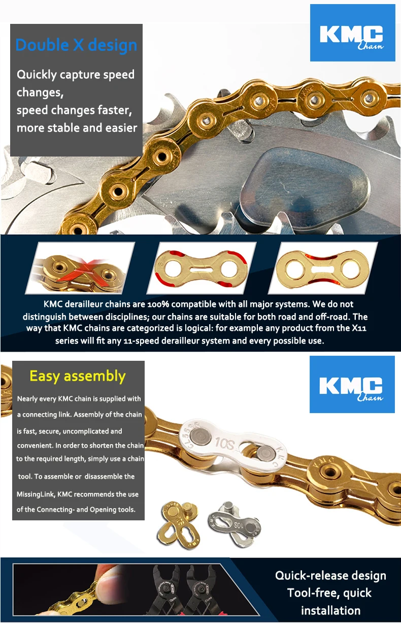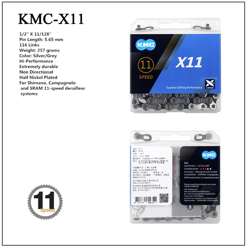 Цепь велосипедная KMC bmx X11 X10 mtb направляющая велосипедной цепи, сила тока X9 X8