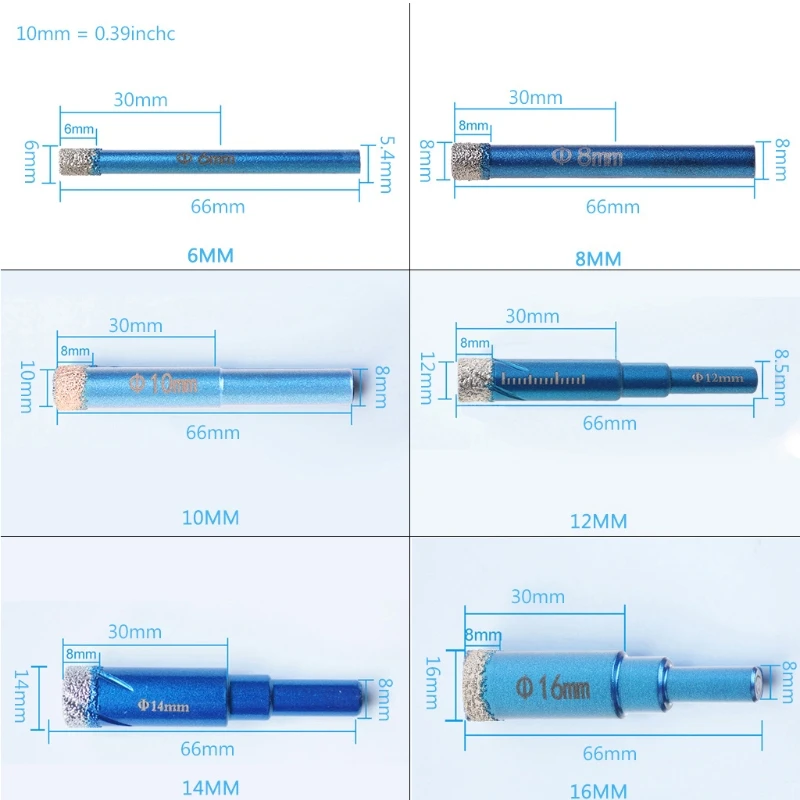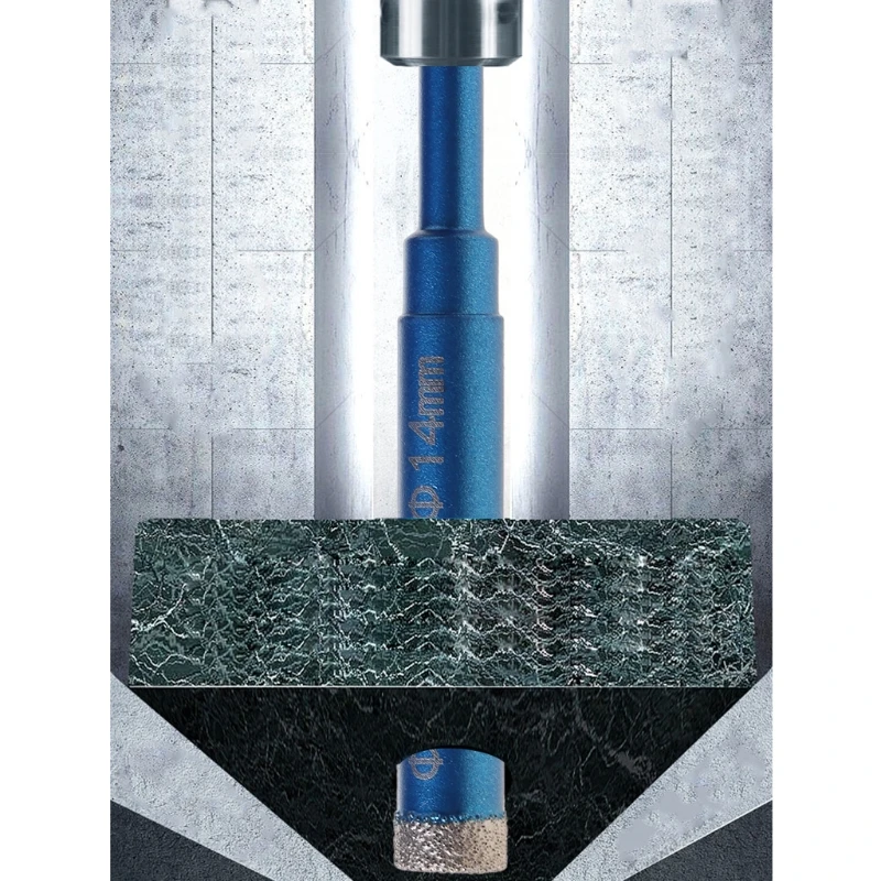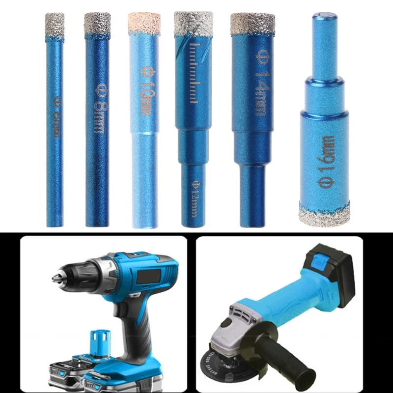 Корончатое сверло с алмазным покрытием, 6, 8, 10, 12, 14, 16 мм, сухое сверление для стекла, мрамора, гранита, кварца, фарфора, керамики