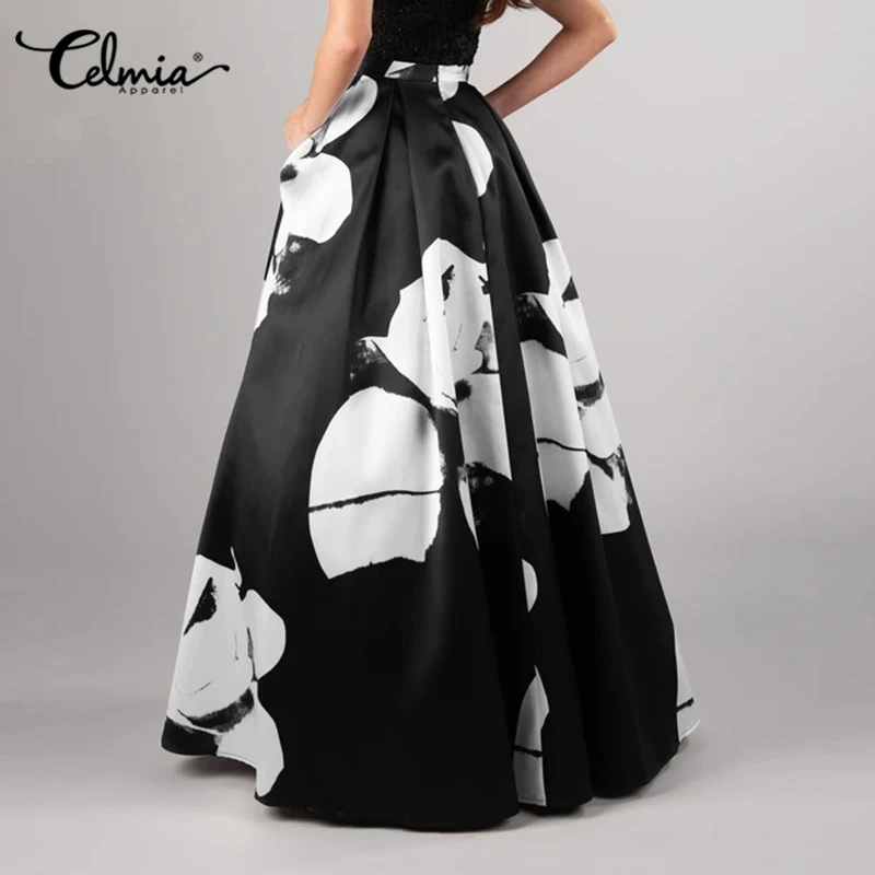 Женская длинная юбка Celmia, богемные Макси-юбки с высокой талией, осень 2022, повседневная юбка с цветочным принтом для вечеринки