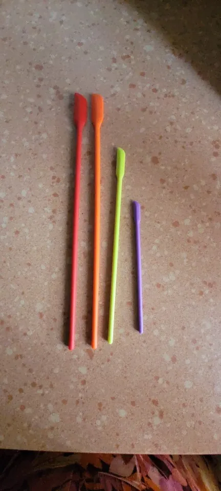 Хорошее качество и точно соответствует описанию. Я бы хотел, чтобы они использовали меньше пластика-каждый шпатель был индивидуально упакован в пластик, а набор из 4 шпателей был помещен в другой полиэтиленовый пакет.