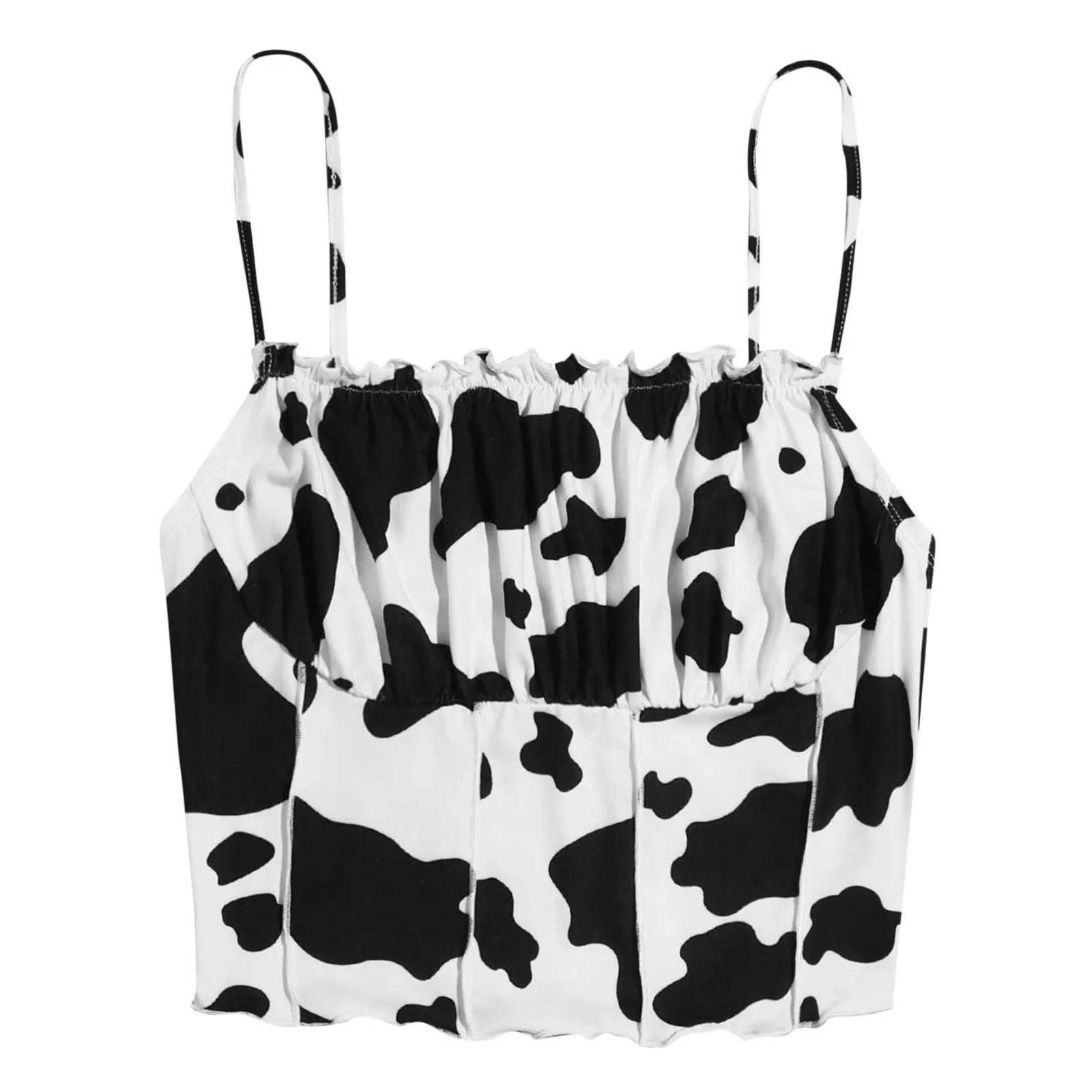 Пикантные Для женщин рюшами майки с принтом коровы ремень топ на бр...