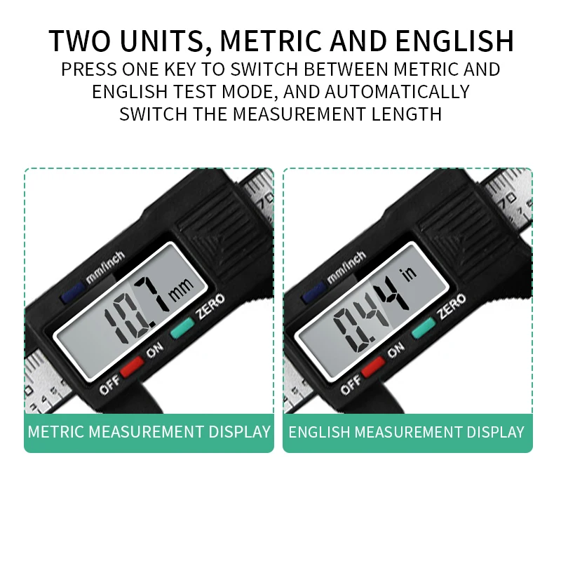 Особенности:<Дюйм и мм преобразование: одна кнопка быстрого переключения между двумя единицами: дюйм и миллиметр, безусловно, сохранить ваше время.<Высокое качество: Изготовлен из АБС-пластика, прочный и портативный.<Нулевая Настройка: умный дизайн позволяет установить ноль простым нажатием кнопки и начать новое измерение в любой точке шкалы.<Прозрачный ЖК-экран: большой и легко читаемый ЖК-дисплей позволяет быстро и легко получить точные результаты.<Функция: отлично подходит для домашнего/DIY измерения.