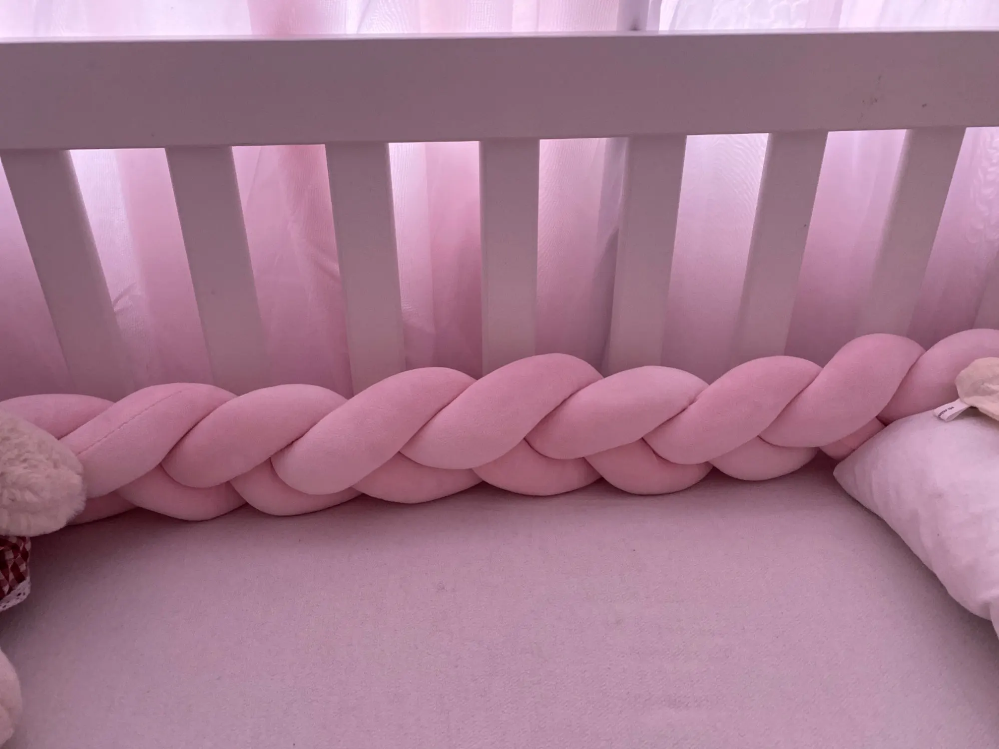 бортик мягкий и упругий, после стирки и отжима не потерял форму. можно использовать как ограничитель площади, чтобы малыш не скатился с взрослой кровати во сне
