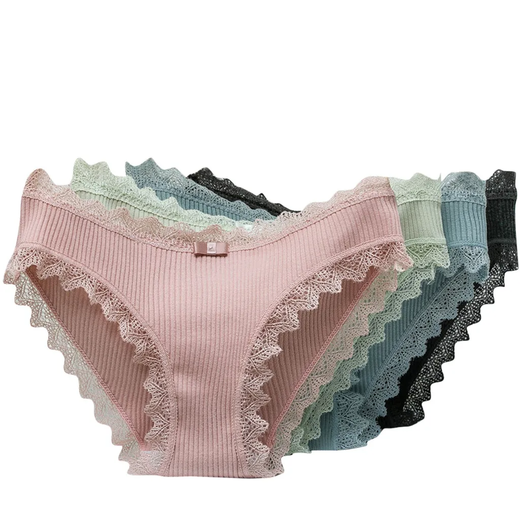 Сексуальные кружевные трусики, женское хлопковое нижнее белье, Бесш...