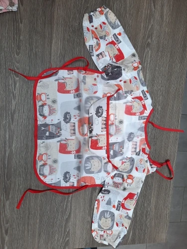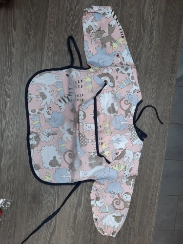 Хлопок внутри и водонепроницаемая снаружи. Имеет стиль ковша нагрудник вы можете использовать, если вам нужно. Отлично подходит для кормления, а также для использования во время боли или развлечений... Милый принт и отделка. Счастливы!